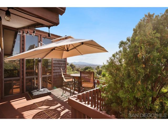 Perched high on the hill in the gated community of Cimarron, this single story home offers breathtaking views to enjoy the sunsets and July 4th fireworks from the wrap around deck! The resort-like community features a clubhouse, tennis courts, pool, hiking trails and even a duck pond. Enter through the gorgeous, custom distressed wood door into the home with an open floor plan, vaulted beamed ceilings, numerous skylights added for natural light, views from most rooms and a detached 2-car garage...