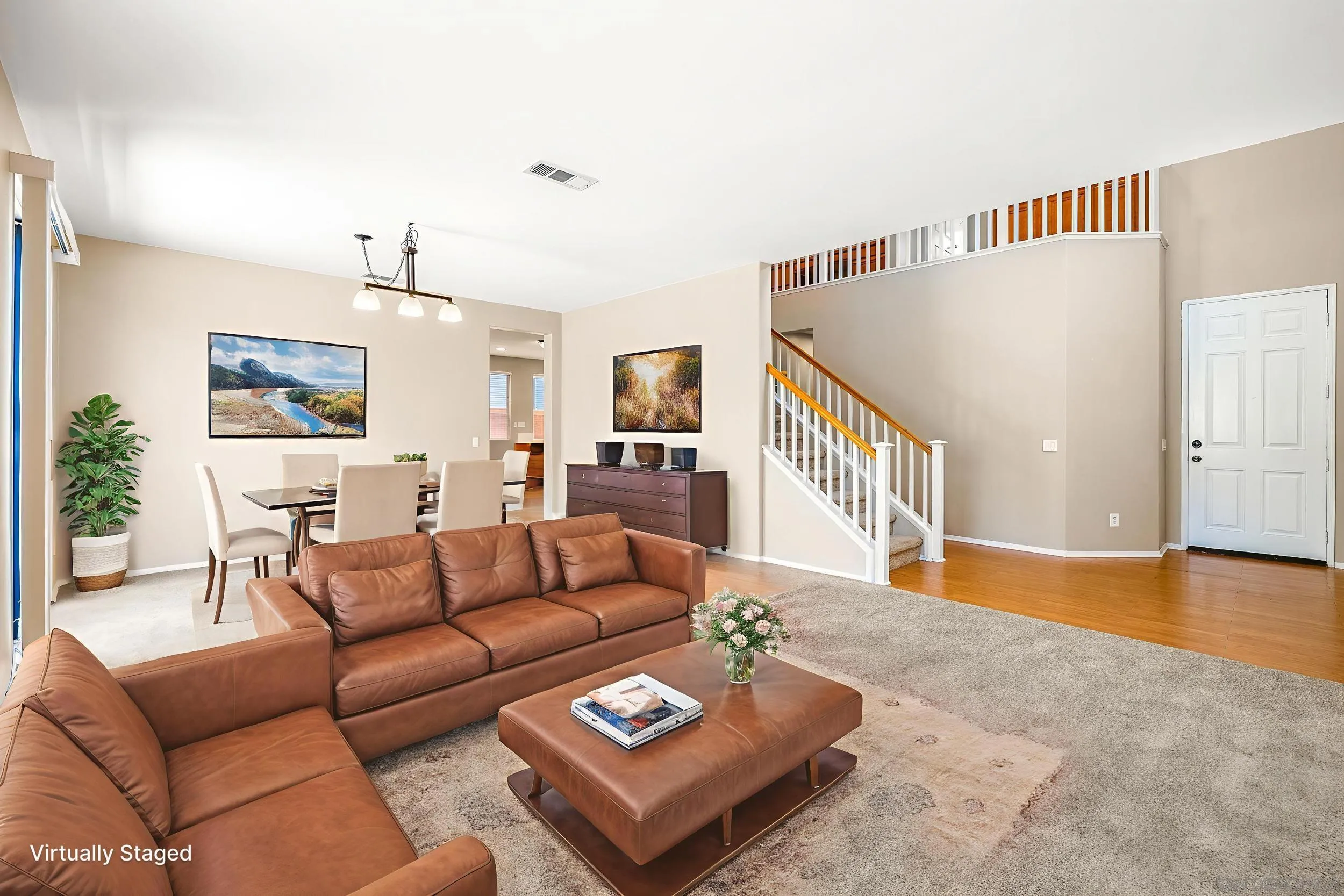 Welcome to 33010 Poppy St., located in the highly sought-after gated golf course community of Redhawk in Temecula! This spacious home boasts the best floor plan in the neighborhood, featuring 3 bedrooms upstairs and a full bathroom downstairs—perfect for guests or multigenerational living. Enjoy a large kitchen with a center island, stainless steel appliances, and abundant counter space that opens to the family room with a cozy fireplace. The home also features separate living, dining, and family rooms, offering versatile spaces for relaxation and entertaining. Upstairs, the oversized primary suite includes a huge walk-in closet and a luxurious en-suite bath with a separate shower and soaking tub. Additional features include mirror closet doors, upstairs laundry, central AC, new fencing, and a three-car garage. Enjoy life in a gated, golf course community with great schools, parks, and all the best Temecula has to offer. This one checks all the boxes—don’t miss it!