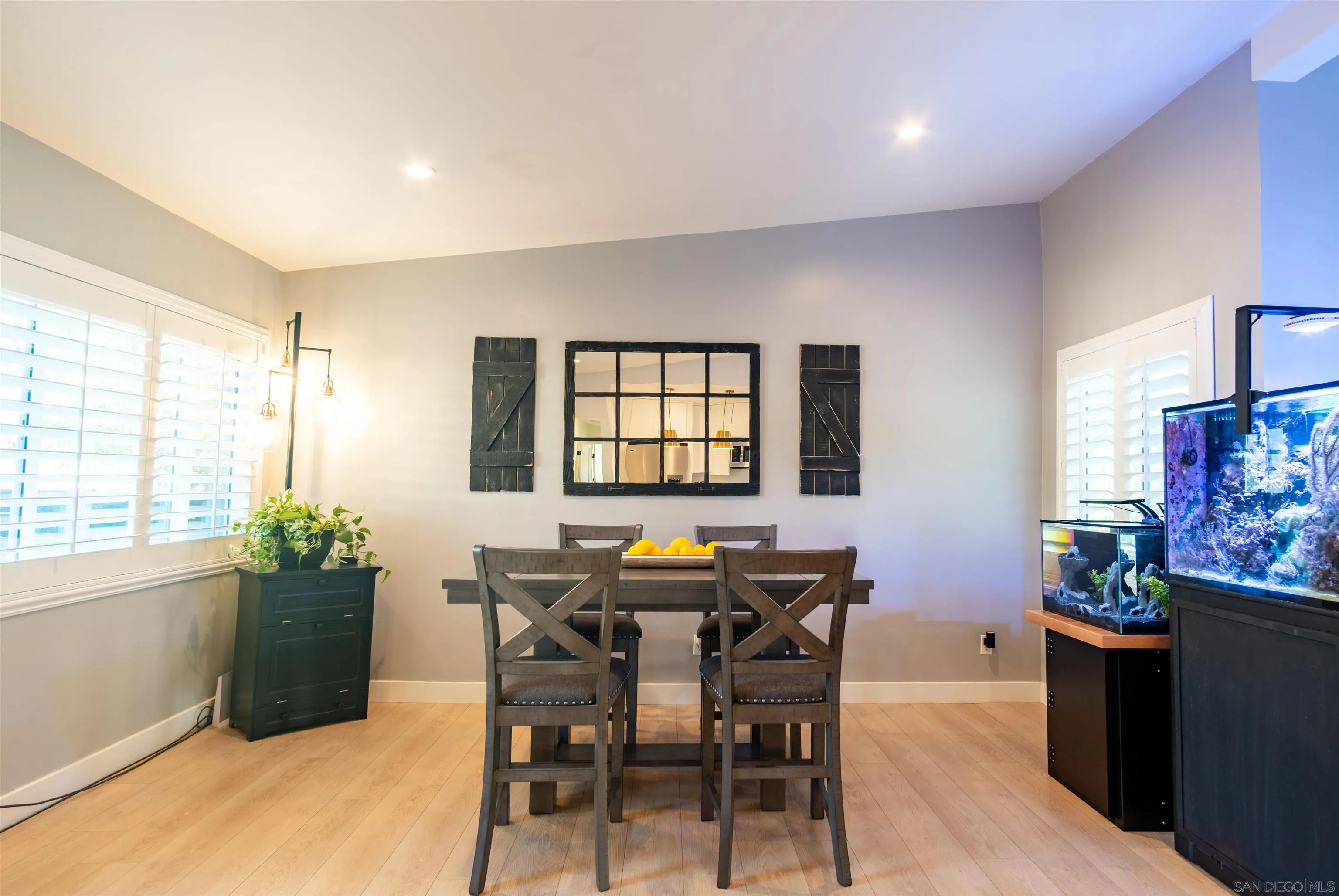 Modern Farmhouse on a corner acre lot! Beautiful 3 bedroom home with an open-concept kitchen with stainless steel appliances, all wood cabinets, quartz counters, bar seating, and a light-filled dining room. Spacious primary suite with walk-in closet & patio access. Features include dual-pane windows, shutters, laminate wood floors and designer touch finishes. Laundry room with full stackable washer & dyer. Enjoy the spacious remodeled back patio, a dining view deck, outdoor shower, and fully fenced grounds with room for animals or an ADU. Useable acre lot with endless opportunities with two different gates entrances. Detached insulated garage with AC and a sink, making it the perfect work area. Extra storage with the storage container, RV parking & tons of space for entertaining.