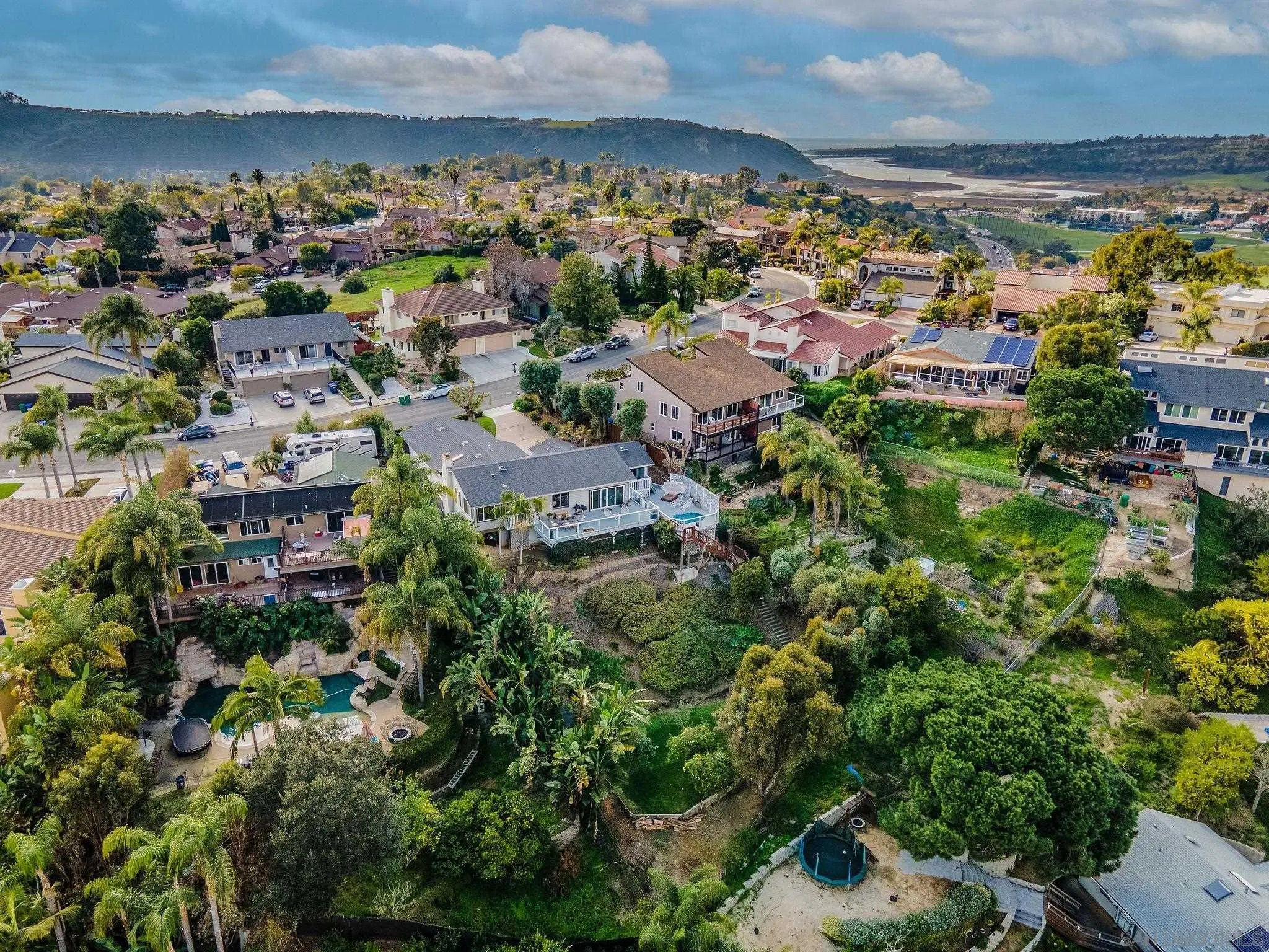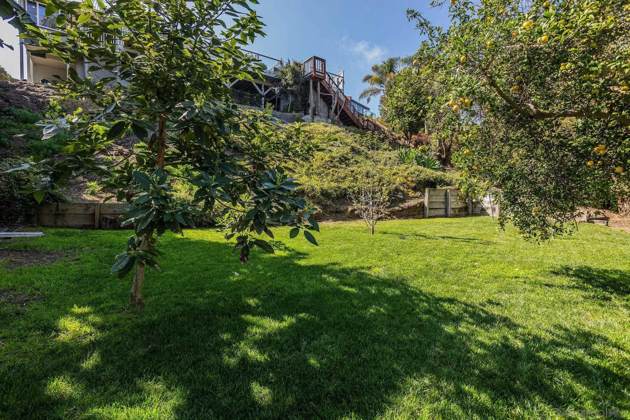 Stunning single-level home partially remodeled in 2019! located within the heart of Carlsbad. Situated on a .39-acre lot with gorgeous VIEWS and ADU potential! One bedroom and bath could be completely secluded with its own entrance. Incredible view of the Carlsbad hills visible from the master bedroom, living room, dining room, kitchen and office. This amazing residence features a large and bright office, and engineered hardwood flooring throughout. Vaulted ceilings with large windows and French doors in the dining room, living room, and primary bedroom bask the home in an abundance of natural light. A beautifully appointed Chef’s kitchen boasts quartz countertops, sleek stainless-steel appliances, recessed lighting, and modern cabinetry with breakfast counter seating that opens to the living area. A spacious primary suite offering deck access, a walk-in closet with a nice wood finish, and its own spa-like en-suite bath featuring dual sinks and a custom walk-in shower. Outdoor living has been extended to the Entertainer’s backyard featuring a sprawling deck with four levels of sundecks, lush landscaping and thoughtfully-designed hardscape including peaceful and serene seating areas, perfect for entertaining and taking in the views. The lower portion of the yard offers a large level grassy area with several varieties of fruit trees, plants, and herbs including Avocado, Pomegranate, Lemon, Apples, Cherry, Apricot, Dragon Fruit, Passion Fruit, Raspberry, Strawberries, Rosemary and Thyme.