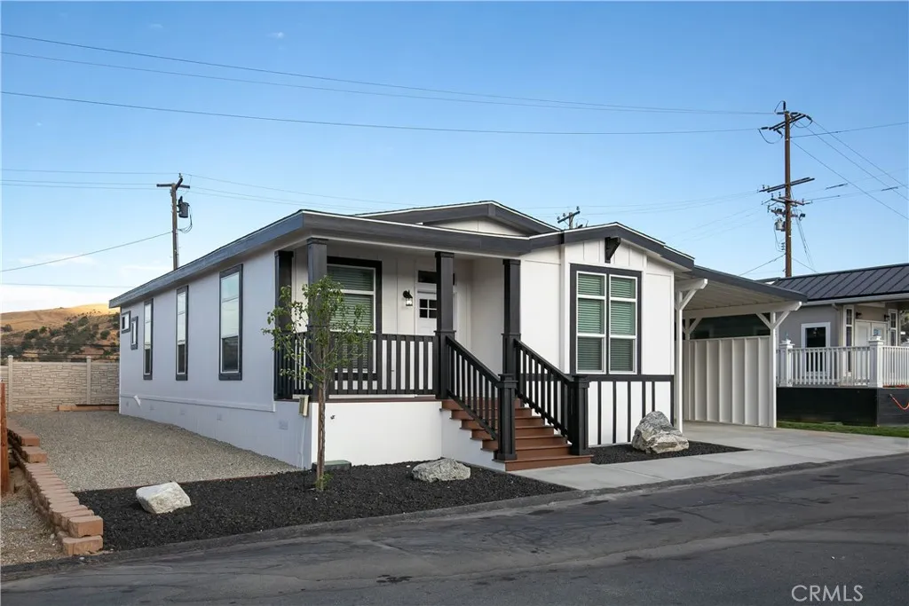 Your Mountain Haven. Step into a world of tranquility and modern comfort with this brand new, never occupied, 2025 Champion Skyline Manufactured Home. Situated in a tranquil mountain setting under wide-open skies, the well-maintained Oakridge Mobile Home Park offers a picturesque backdrop for your new life, with paved roads and neatly kept surroundings. At the heart of the home is a relaxing living room providing a dramatic focal point. A modern, open kitchen with sleek dark cabinetry complements light countertops and stainless-steel appliances await culinary adventures. Pendant lights cast a warming glow over the central island, creating an inviting atmosphere enhanced by the rustic wood design flooring. The bathroom combines practicality and style, featuring a double sink vanity with dark cabinets and modern fixtures. Step into the double-sized, glass-enclosed shower, bathed in natural light from sliding windows above. Rustic wood-design flooring adds a touch of warmth. A spacious laundry room with upgraded cabinets is ready to handle everyday needs. Complete with forced-air heating and air conditioning, the home is constructed to meet or exceed Energy Star compliance, ensuring energy efficiency and sustainability. Lanscaping, upgraded carport/garage and custom shed complete with electricity. Professionally installed within this beautiful community, this residence offers a harmonious blend of modern comfort and serene mountain living. More than just a house; it is a sanctuary waiting to welcome you. Come, experience life within these walls, and create a beautiful future.