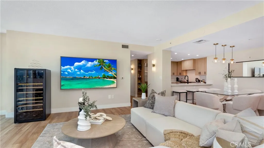 Elevated luxury, panoramic views, and bespoke design await at this fully reimagined 12th-floor corner residence in the exclusive, guard-gated enclave of Marquee at Park Place. Newly transformed through a complete, top-to-bottom renovation, this 3-bedroom, 2-bathroom home is a statement in transitional elegance and modern sophistication. From the moment you enter, youre greeted by walls of glass that flood the open-concept living space with natural light and frame sweeping vistas of the city skyline and Saddleback Mountains. The newly designed chefs kitchen is a culinary showpiecefeaturing all brand-new, top-of-the-line appliances, including a Sub-Zero refrigerator, Wolf range, and Cove dishwashercomplemented by new sleek quartz countertops, custom cabinetry, and warm wood flooring throughout. Spanning approximately 1,583 square feet, this home seamlessly blends form and function. Every surface and finish has been curated to reflect timeless luxury: from the organic textures and materials to the completely redesigned spa-like primary bathroom, outfitted with a new walk-in shower, new custom vanity, and designer fixtures and walk in closet with custom built ins. Both bathrooms showcase elevated details and craftsmanship that invite relaxation and indulgence. Step onto your private terrace to savor a glass of wine while enjoying uninterrupted city lights and mountain viewsyour personal retreat in the sky. Set within one of Irvines most desirable addresses, residents enjoy white-glove amenities including a 24-hour concierge and security, resort-style pool and spa, fitness cente