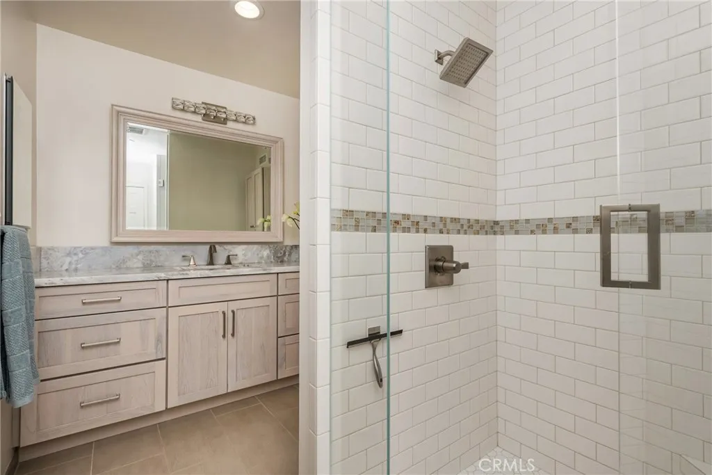 Welcome to this beautifully upgraded 4-bedroom, 3-bathroom home offering 2,121 sq ft of thoughtfully designed living space. Featuring a downstairs bedroom and full bath, this layout is ideal for guests or multigenerational living. At the heart of the home is the Designer Chef's Kitchen, equipped with premium appliances including a Dacor refrigerator, Dacor double oven with warming drawer, Wolf 6-burner cooktop, Bosch dishwasher, and Dacor convection microwave. Quartzite countertops, a vegetable prep sink, and custom pull-out shelving complete this culinary dream. All bathrooms have been tastefully updated with elegant KraftMaid birch wood cabinetry, adding warmth and sophistication throughout. The home features 3/4-inch Hickory wood floors, recessed lighting, and ceiling fans to keep you comfortable year-round. Step outside to entertain in style under the custom-built covered patio, perfect for alfresco dining. The expansive backyard is a private oasis with mature Hass avocado, orange, lime, and lime trees, plus a convenient slab sink for barbecuing. Two custom 8x16 sheds, fully insulated with drywall, windows, and 3-amp wiring, provide exceptional additional space. Additional highlights include RV parking with remote-controlled gate access, Noritz tankless water heater, Trane top of the line air conditioner. reverse osmosis water system, Vertex security system with multiple cameras, newer ductwork, and a 3-year-old composition shingle roof with a 50-year warranty. A rare find that seamlessly blends luxury finishes, thoughtful upgrades, and versatile outdoor spacethis home