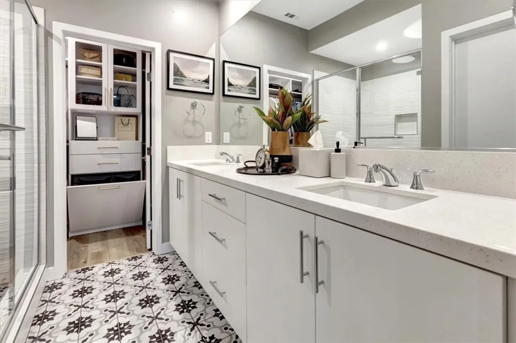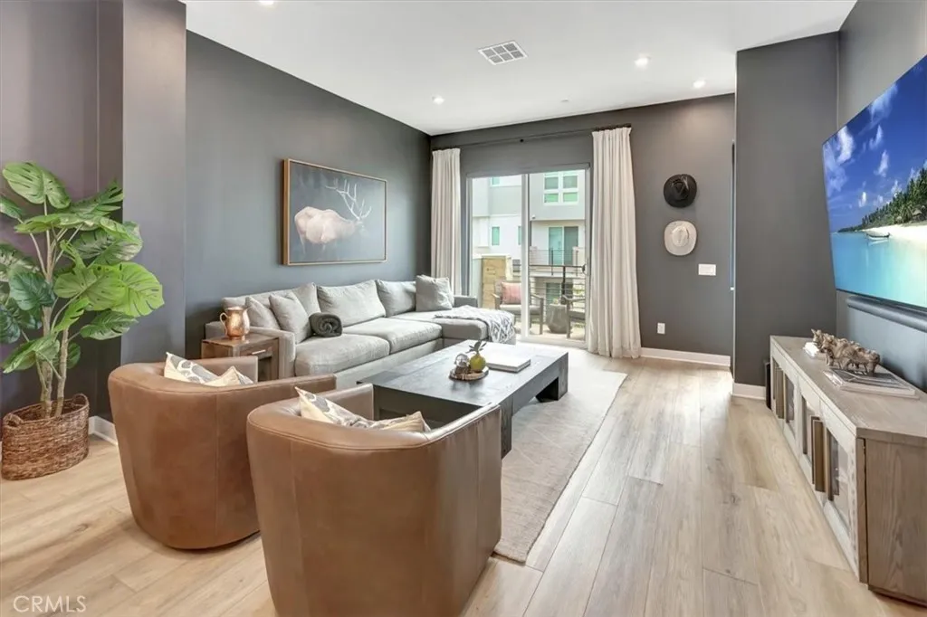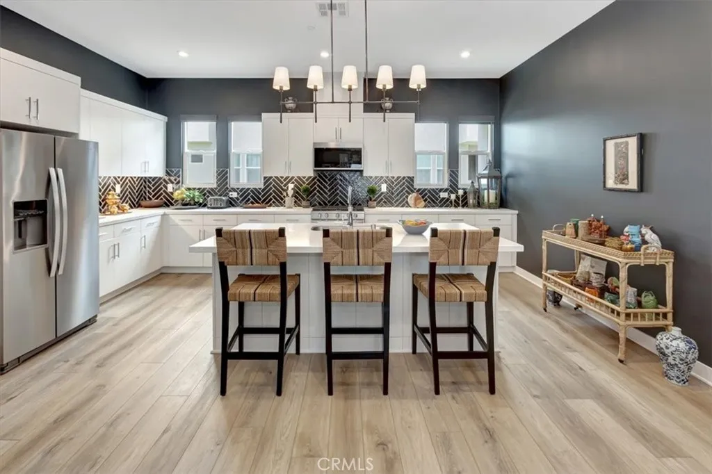 Modern Elegance Meets Effortless Comfort in the Heart of Anaheim! Step into a stunning blend of luxury, style, and smart design in this beautifully appointed 3-bedroom, 3.5-bathroom home, where every detail has been carefully curated for modern living. Nestled just minutes from the iconic Packing House and the magic of Disney, this residence offers the perfect fusion of sophistication and convenience. From the moment you enter, youll be captivated by the open floor plan bathed in natural light, accentuated by designer Sherwin Williams' paint, LED recessed lighting, and stylish LVP Provence Moda Living At Ease flooring that flows seamlessly throughout the home. The gourmet kitchen is a dream, featuring sleek quartz countertops, custom tile backsplash, and luxury finishes that elevate everyday living. Retreat to the spa-inspired primary suite, where a Hydrorail Shower with a 10 Rainhead promises indulgent relaxation along with a custom walk-in closet! All bedrooms are pre-wired for TVs and the primary bedroom is adorned with remote-controlled custom window treatments from The Shade Store in Fashion Island, adding both function and elegance. Thoughtful upgrades aboundfrom Restoration Hardware and Arhouse chandeliers that dazzle above, to the added custom linen cabinetry and the full interior insulation package for year-round comfort. The 2-car garage boasts an EV charger and epoxy flooring, and the roof has solar panels, ensuring both eco-conscious and future-forward living. Enjoy a suite of luxury amenities, including a pool, spa, two dog parks, barbecue areas, recreational g