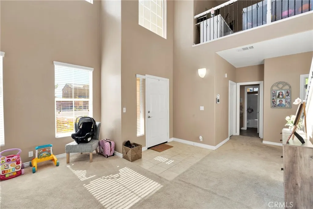 This Beautiful Home offers a modern, experience Beautifully renovated in 2021 with cathedral ceilings and an elegant wrought-iron staircase open concept layout featuring a center island flowing into a family room . There is a bedroom (without a closet) downstairs and a full bathroom downstairs. Upstairs is a loft with built in cabinets. The master suite has double door entrance, a fireplace and a large walk in closet with mirrored doors and the large master bathroom has a vanity. Fully fenced backyard and the front and backyards are landscaped. The oversized 3-car garage give you plenty of space for multiple cars or toys! heating and washer/dryer hook-ups inside downstairs schools near Cottonwood Elementary,Cedar Middle and Oak Hills High School near 15 Fwy and shopping centers.NO SOLAR PANELS
