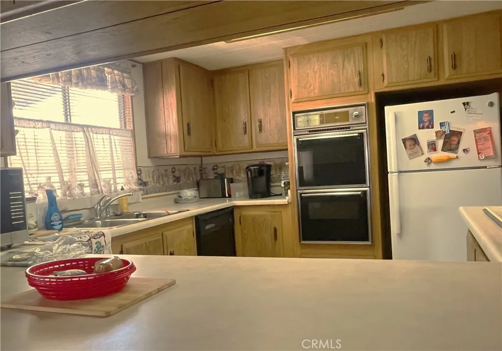 Uniquely set on its lot with an open floor-plan roomy and spacious....with kitchen featuring dishwasher, double oven, counter-top gas range, lots of cabinet space, built in desk set, pantry, stainless steel sink, newer refrigerator included, with wrap-around breakfast bar for informal dining options open to family room, built-in cabinetry, ceiling fan....Arched transition pass-through to large living room with separate additional room for storage or small office situation....Large bedrooms....hall bath with walk-in shower....primary bath with large tub....laundry room washer/dryer included....FA/CA....covered carport, convenient guest parking across the street....ramp up to entrance....storage shed....A wonderful Senior Community (+55) located in the Arlington area of Riverside...minutes away from shopping conveniences...easy access to points North South, East, West....a gated community well established and maintained featuring large clubhouse with kitchen used for family and community events, large pool and spa...Riverside Country Club..