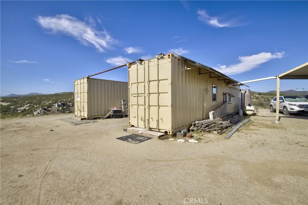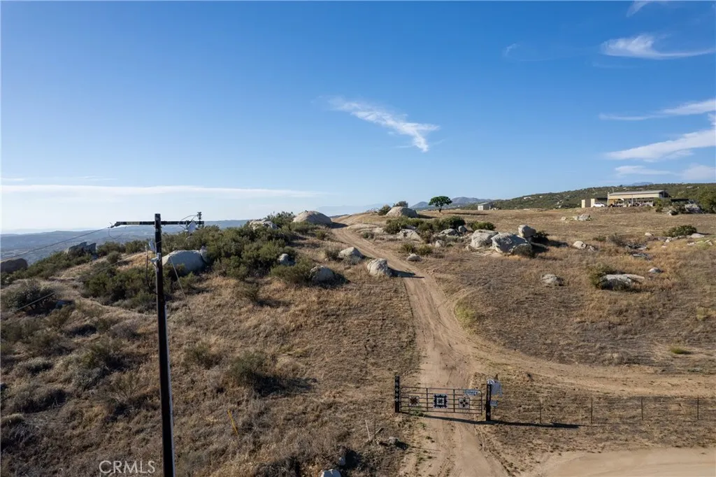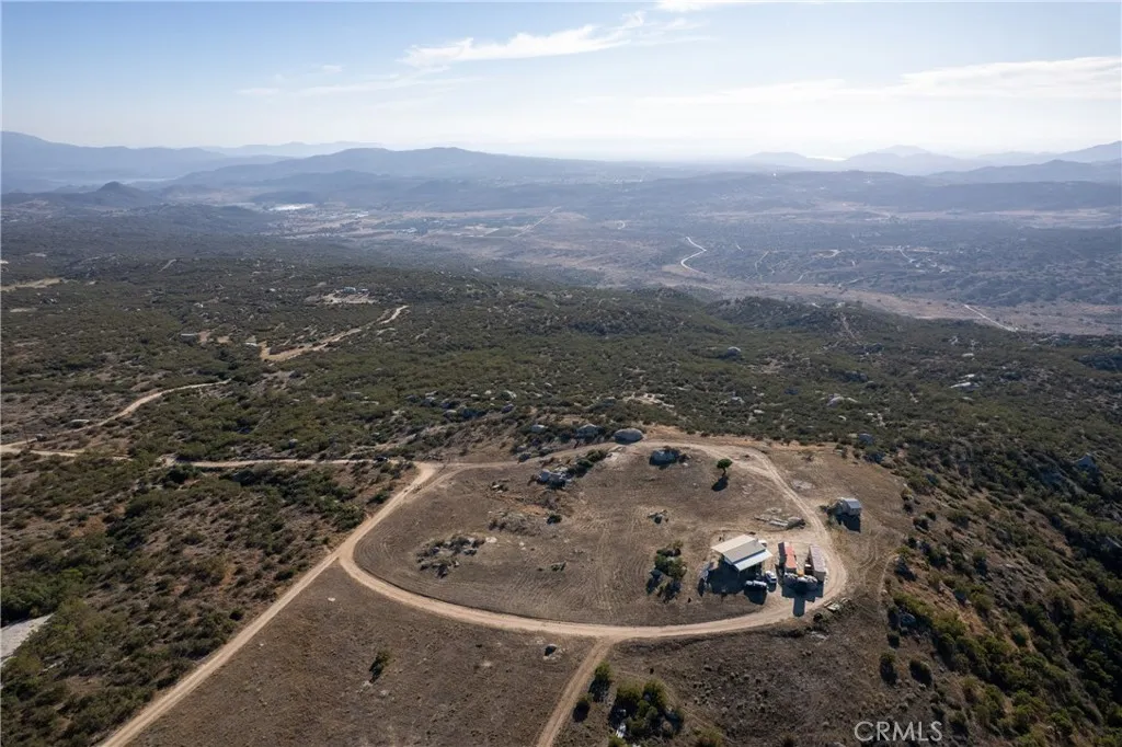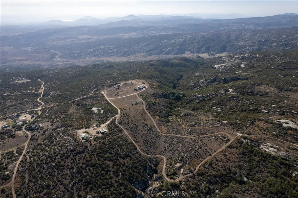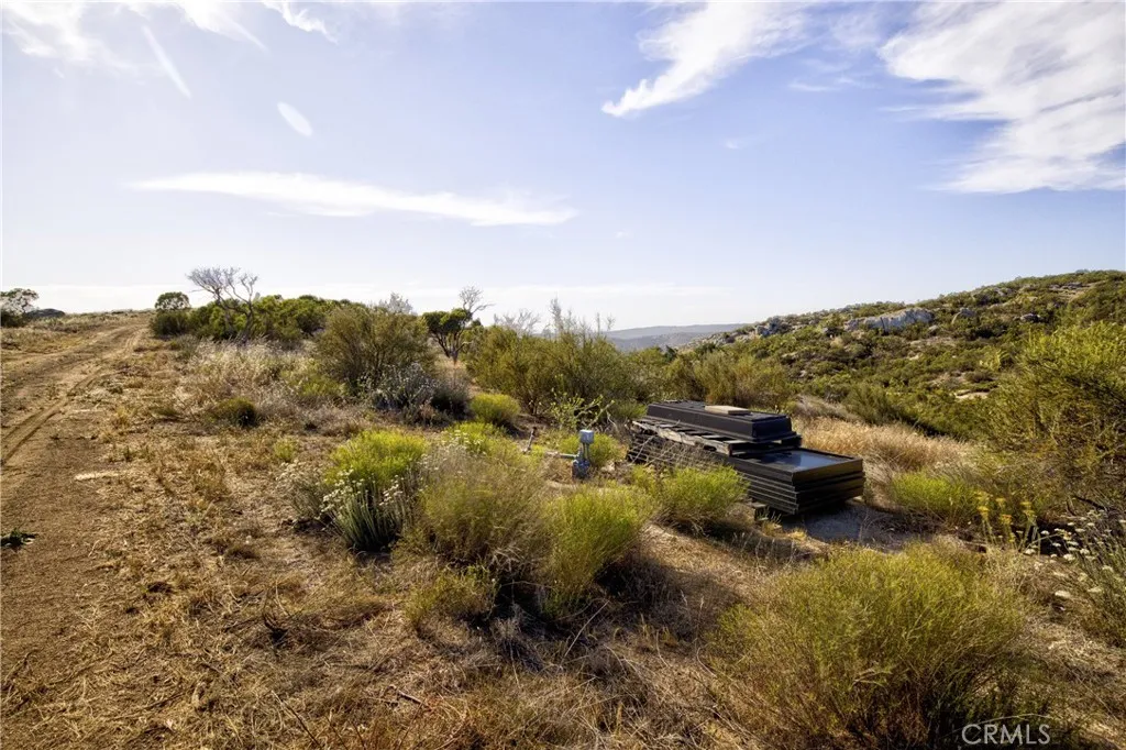 Back on market at NO FAULT of sellers ! King of the Mountain - The Last Property on Dusty TRL, Where Pictures Dont Do It Justice. Off grid living! Welcome to 39106 Dusty Trail, affectionately known as Shiloh (meaning place of peace) and true to its name, this remarkable property offers unmatched privacy, serenity, and panoramic views. Located at the end of Dusty Trail, backed by protected conservation land, and surrounded by sweeping vistas, this 20 + - acre property is truly one-of-a-kind. Enjoy breathtaking westward views of the Santa Rosa Plateau, Temecula Wine Country, Vail and Skinner Lakes, the Ortega Mountains, and Mt. Baldy. To the north, take in sights of Arrowhead and San Gorgonio; to the east, the Santa Rosa and Cahuilla Mountains; and to the south, the entire Palomar Mountain range including the iconic Palomar Observatory. On the clearest days, even a sliver of the Pacific Ocean comes into view. Included in the sale is a 34' fifth-wheel RV set beneath a permanent 40' x 34' steel canopy with an 8 x 32 wood porch fully equipped with a mini-split powered by its own solar array for year-round comfort. The RV is energy independent with three solar systems (two 2000-watt and one 3000-watt), all running on lithium-ion batteries, plus a water purification system and in-ground septic system. Also included are two 40 x 9 highboy Connex containers, spaced 15 feet apart with materials on-site to complete a metal roof between them. One container is outfitted with three windows and an additional 2000-watt solar system with batteries. A rainwater collection system is in place