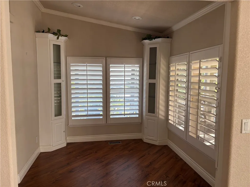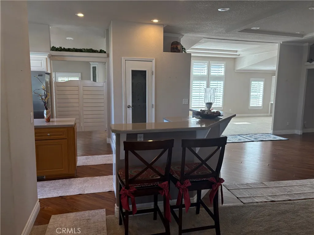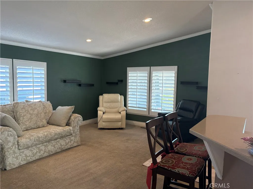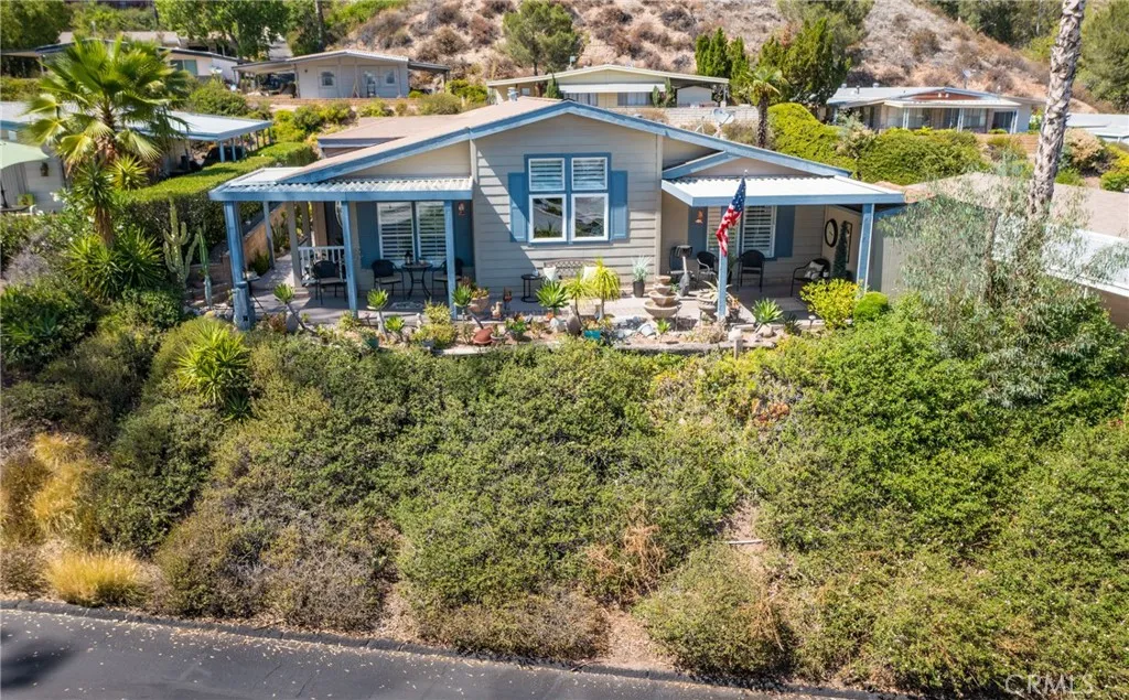 One of a kind, beautiful home in Mountain Shadows 55+ SENIOR park. OPEN CONCEPT kitchen in the middle of the extra large living room and large family room. Enjoy your coffee in the cute breakfast nook while enjoying the beautiful view of the valley. SHUTTERS grace all the windows, crown molding, extra large baseboards, wainscot on formal dining area. Walk in shower in Hall bathroom with custom shower doors. Guest room has large walk in closet for that extra storage. Third bedroom is an office with built in desks and cabinet. Primary bedroom has a very large and welcoming tub with separate shower. The walk-in closet is perfect. The laundry room has a 36 inch backdoor opening to the car port. The home was extended when new and the square footage was enlarged in the living area. A wall was removed to make the living area bigger. Wall can be put back if you need a 4th craft/bedroom. Extra insulation was added to the outside walls when new. The view from the front porch is breathtaking and the large shed adds storage space. Come see it today.