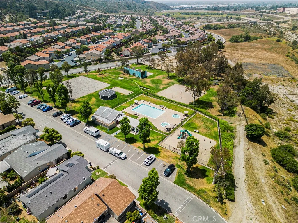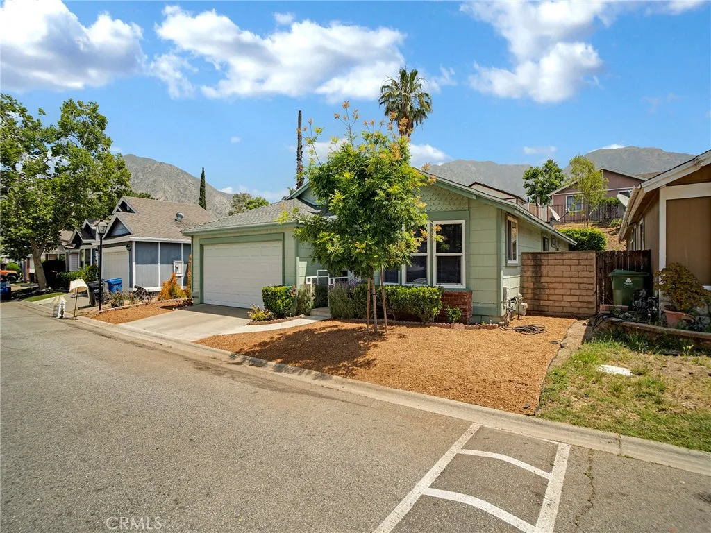 Welcome to this beautifully maintained 2-bedroom, 2-bathroom home in the highly sought-after Santiago Estates community! Step into a bright and open floor plan featuring vaulted ceilings, tile flooring in high-traffic areas, and laminate in the bedrooms and living spaces. The spacious kitchen offers generous cabinetry, a center island, and a cozy breakfast nookperfect for casual mornings. Host guests in the adjoining dining area or unwind by the wood-burning fireplace in the inviting living room, which opens to a covered patio. The primary suite offers privacy and comfort with a walk-in closet, sliding doors to the backyard, and a spa-like bathroom with dual sinks, a soaking tub, and a separate shower. Outside, enjoy serene mountain views, a side yard, and ample space for outdoor gatherings. Additional perks include an indoor laundry room, a two-car garage with an electric roll-up door, and access to top-tier amenities: pool, spa, clubhouse, racquetball and basketball courts, playground, gazebo, and more. Located near the 210 freeway and scenic hiking trailsdont miss the chance to make this your next home!