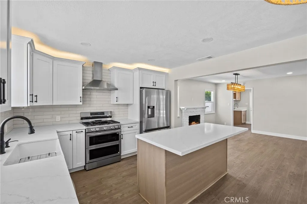 BACK ON THE MARKET!! Step into this freshly remodeled single-level home, where every detail has been updated for comfort, style, and function. Inside, the open layout is bright and welcoming with high ceilings, LVP flooring, and recessed LED lighting throughout. The living and dining areas each feature their own fireplace, creating cozy spots to relax or gather. The kitchen shines with quartz countertops, shaker cabinets with remote-controlled uplighting, a subway tile backsplash, and stainless steel appliances. Whether you're prepping meals or entertaining, this space is both beautiful and practical. Down the hall are 3 bedrooms and 2 updated bathrooms. The hall bath offers a walk-in shower, while the second bathroom includes a tub/shower combo and dual vanities. The dedicated laundry room adds convenience with built-in cabinets and a utility sink. A large enclosed patio with ceiling fans gives you bonus space for a gym, playroom, or lounge area. Outside, the covered patio opens to a backyard built for entertaining or quiet mornings. The pool features a newer heater, pump, and filter, making it swim-ready year-round. A block wall covered in stucco and paint adds privacy and a clean finish, along with new gates on both sides of the house. The 2-car detached garage, long driveway, and gated side area offer extra parkingincluding space for a small RV or boat. Major systems are taken care of, including a new roof, central HVAC, and a newly insulated attic. Located on an 8,056 sq ft lot, this home is near top-rated schools, parks, and shopping, with easy access to the 22, 55, a