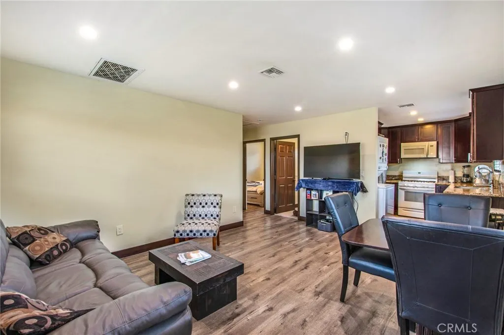 Big Price Improvement! Welcome to 2685 Arrow Highway, an exceptional investment and multi-generational living opportunity nestled in the heart of La Verne. This versatile property features a beautifully maintained 2-bedroom, 1-bath front home of approximately 900 sq ft, complete with central air conditioning, a private yard, and parking for three vehiclescurrently generating $2,800 per month in rental income. Set behind the main residence is a recently built, fully permitted 2-bedroom, 1.5-bath ADU (approx. 648 sq ft, built in 2021), offering modern amenities such as central air, a private rear yard with a flourishing orange tree, BBQ area, patio, and garden, as well as granite kitchen counters and a convenient stack washer/dryer. The ADU also enjoys direct access to a detached, permitted 200 sq ft bonus room at the rear of the garageideal for use as a studio, office, or guest suite, featuring independent heating and air with potential for a future bathroom addition. The property now comes with two overnight annual street parking permits which, combined with the two parking spots on the driveway, provides ample parking for both units! Both homes benefit from 21 owned solar panels, dramatically reducing monthly electricity bills and to be fully paid off at close of escrow, ensuring long-term savings and energy efficiency. With a flexible layout, private outdoor spaces for each dwelling, and proximity to top-rated Bonita Unified schools, this property is perfect for families, investors, or anyone seeking strong income potential and versatile living in a highly desirable neigh
