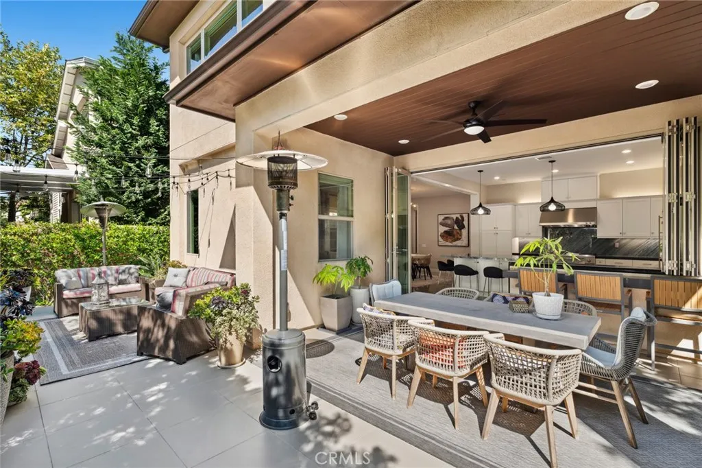 **Former Model Home**VIEW Lot**MOVE-IN READY**Single family home located in Irvine newest community, Cadence Park. This charming home is situated within the Cantata community which showcases modern living and resort-style amenities.**Very private Single-family home facing walking trail and community park. Relax and enjoy indoor/outdoor living from dining area to outside patio. **House features 4 Bedrooms, 6 Baths, living room, bonus room and attached 2-car garage.**Fantastic custom designed kitchen with white cabinets, overhanged island countertop for people comfortably sitting around and backsplash to porcelain with beautiful blue/grey color.**Stainless steel appliances; Professional series 5 burner cooktop; built-in microwave; built-in convection oven, and dishwasher.**Master bathroom with dual sinks and walk-in shower.**Convenient laundry room with cabinets.**Automated awning on the 3rd floor.**Linear fireplace in the wall at the backyard with waterfalls on the sides.**Closets systems in all bedrooms.**Finished garage with epoxy floor, cabinets/closets, organization systems, hanging shelves for storage, Tesla charger.**Automated blinds on all windows and stackable doors on the 3rd floor.**Walking distance to beautiful parks, private community swimming pools, spas, clubhouses, tennis courts, playgrounds, picnic areas, and walking/biking trails. ** World-Class education with neighborhood schools: Cadence Park and Portola High - one of the best high schools in California. You will also be in close proximity to exciting shopping, dining and entertainment. 4 miles to Irvine S
