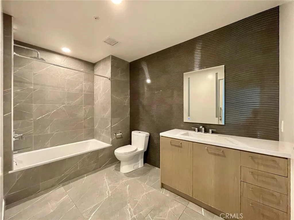 Luxury Studio unit in PERLA on Broadway with city light views. 1 Assigned parking space in the building parking structure. Wood flooring throughout except the bathroom. Modern kitchen with quartz countertop and full-height porcelain backsplash. Spacious bathroom with tile finishes, wood cabinetry, and illuminating mirror. Laundry closet with stackable washer & dryer. Rent covers HOA, water, trash, gas, and over 44,000 square feet of inviting indoor and outdoor amenities. Hotel-inspired lobby with 24-hour attended reception. Fully-equipped fitness center. Yoga studio with the Yoga instructor. Theater and business center. Open club lounge with kitchen facility, wine tasting room, billiards, and ping pong. Pet spa and dog park. Sparkling heated pool and spa. High-speed wifi throughout amenity areas & MORE. Grand Central Market and Metrolink station are nearby.