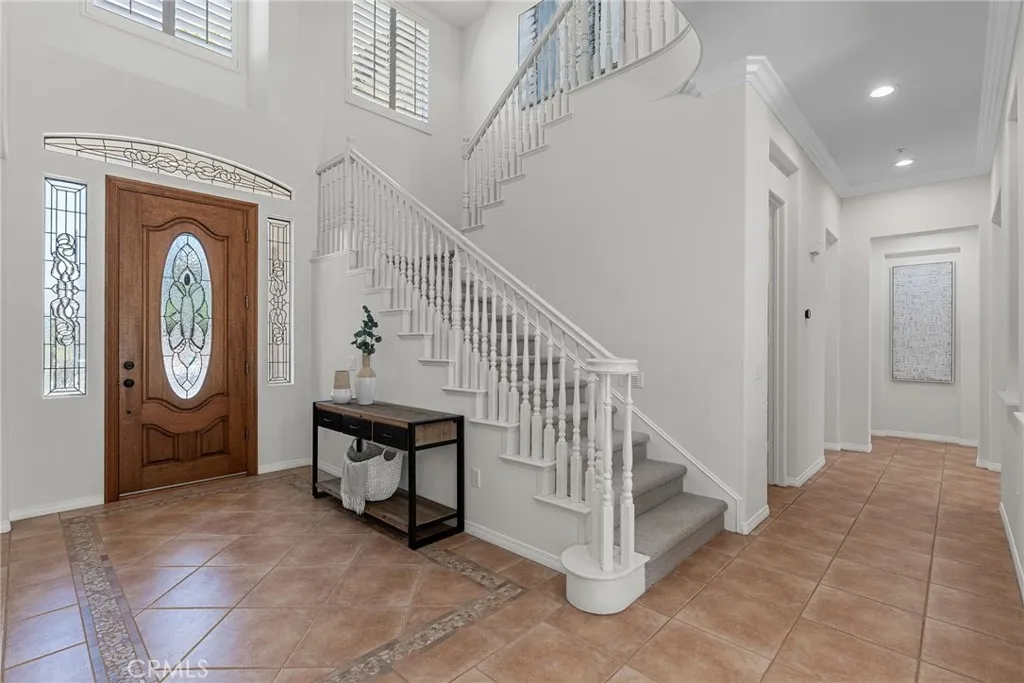 Perched on a private, single-loaded cul-de-sac, encompassing a large private corner lot, this stunning 5-bedroom, 5-bath residence offers an elevated luxury lifestyle with panoramic hillside views, breathtaking sunsets, and exceptional privacy. Spanning 4,244 sq ft, the home features a soaring entry, designer upgrades, and a showpiece chefs kitchen with dual islands, quartz counters, marble backsplash, custom cabinetry, and top-tier appliancesopening to a light-filled family room with fireplace and walls of windows. The main level includes an ensuite bedroom for guests or multigenerational living, a private office with fireplace, formal living and dining rooms, and dual staircases. Upstairs, the luxurious primary suite boasts a double-sided fireplace, spa-inspired bath, and dual walk-in closets, while three additional bedrooms with scenic views connect to a spacious loft. The resort-style low maintenance backyard showcases a pool and spa, incredible sunsets, city lights, and ocean views on clear daysideal for entertaining. Additional highlights include a rare 4-car garage and expansive motor court, perfect for large families or car enthusiasts. Sirene location moments from major shopping, Irvine Spectrum, and the John Wayne Airport. Miles and miles of mountain biking, hiking trails and beauty just outside your doorstep. The best kept secret in So. OC!