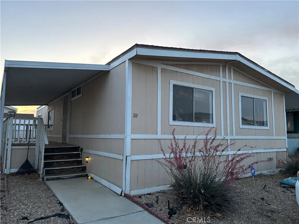 Nice double wide mobile home in Los Ranchos Park * This 3 bedroom 2 bathroom home has an open feel about it * Split floor plan * Cute Kitchen with stove, refrigerator, dishwasher, garbage disposal and touch activated faucet * Dining area off kitchen opens into the living area * 2 bedroom on one side * Primary bedroom on the other side with a vanity area and a large walk-in closet, Large tub and cabinet with one sink but plenty of counter space * Large front porch with carpet * Carport is concrete with covered awning * Small back yard with chain link fencing and gate * Some rock-scape and a few bushes for easy care * Storage Shed with concrete slab * New Carpet and paint * Still needs a little more TLC * Come and check it out. Los Ranchos Community has 2 club houses, 3 pools, a play ground, Tennis and Basket Ball courts and a Lake to go fishing.