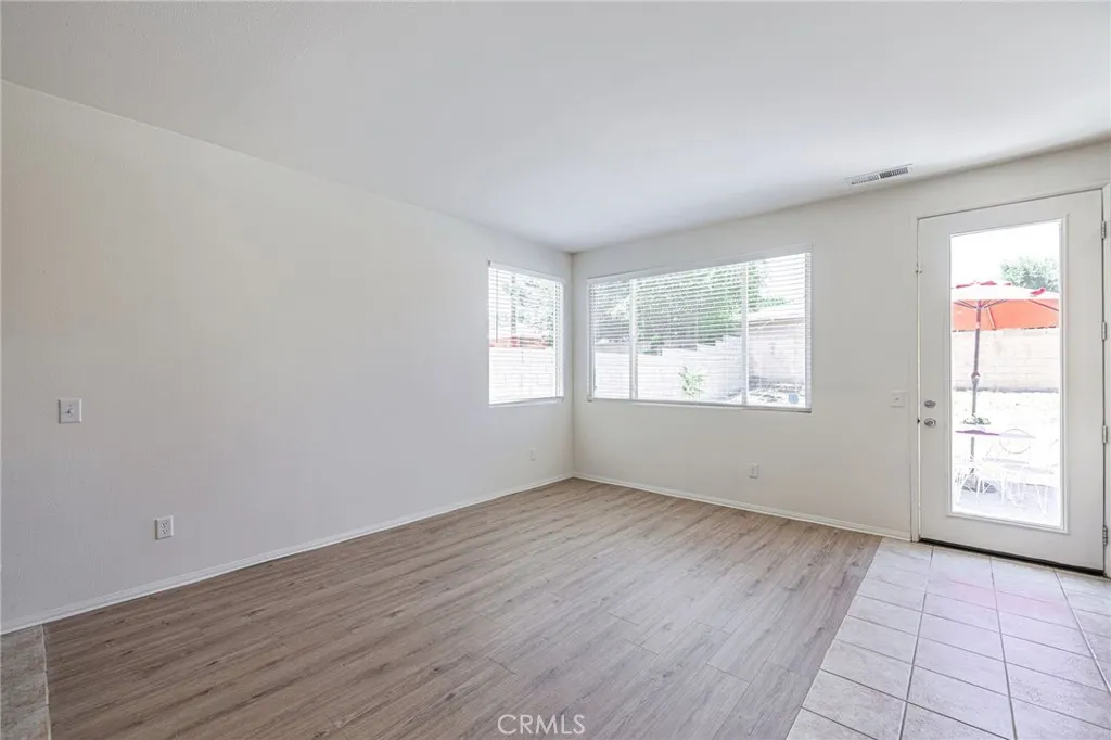 First time on the market/original owner. Turn-key/Move-in Ready! Delightful 3+2 single story with Americana front porch in commuter-friendly Palmdale! Homeowner recently invested in beautiful wood laminate plank flooring, paint, and appliances! This light and bright newer 2002 build home has it all! Open floor plan with impressive elevated ceilings boasts 1,676 square feet of living space. As you encounter this charming abode, you are welcomed by a lovely front porch with a shade tree to adorn the front yard. Inside, you will find open-concept living and dining spaces, followed by the large open eat-in kitchen that is well-appointed with plenty of cabinetry and pantry storage. The adjoining family area has a gas fireplace and patio door leading to the open outdoor space. The large primary suite offers double-door entry, ensuite bathroom with spa tub and huge dual sink vanities, and large walk-in closet. The 7,652 SF lot offers a large rear yard that is fully surrounded by block wall fencing. There is an attached 2-car garage. Consider the all this property offers and make this place your new home!