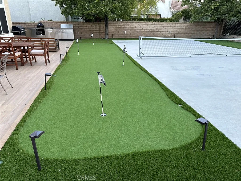 Welcome home to this beautiful 4-bedroom Northbridge house! It has its very own pickleball court, 8-holes of putting golf and NBA size basketball hoop! Just minutes away from the award winning Helmers elementary school and the amazing Northbridge community park, pools, tennis courts, basketball court, clubhouse and walking trails. Almost every bit of the house was remodeled over the last few years. Upon entry, you will find high vaulted ceilings in the spacious living and dining rooms and plantation shutters throughout the home. All the flooring was replaced in the last two years, including large wood-like tile downstairs and real wood upstairs. The stunning upgrades in the kitchen include a custom backsplash, quartz countertops, and all stainless-steel Kitchen Aid appliances with a professional 6-burner cooktop stove. All bathrooms were remodeled with cabinets, quartz countertops and new faucets. Open kitchen to family room concept with plenty of windows, allowing for tons of light. The windows have top-notch solar screens to keep out the heat during the hot summers. There is also a whole house fan that helps cool the house at night. Full bedroom/office downstairs and a bathroom with a shower. Spacious primary suite with a huge walk-in closet! This lovely home also has a newer Lennox HVAC system, which includes a top-of-the-line purification system and thermostat. There is an attached 3-car garage with an abundance of built-in storage cabinets. The backyard has the same expensive wood-like tile as the house and is the perfect entertainer's yard. LOW HOA & NO MELLO ROOS TAX
