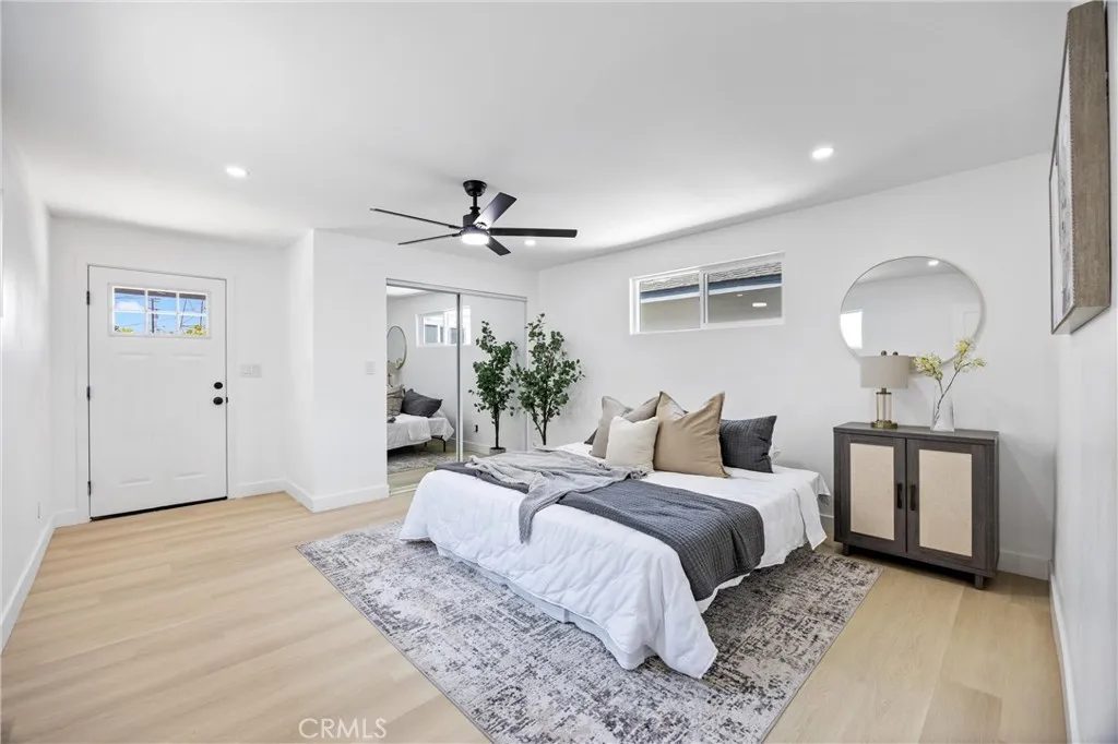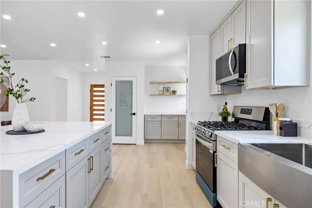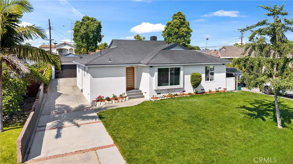 Beautifully Redesigned 4-bedroom home with an entertainer's layout, located in one of Downey's best locations. This exquisitely remodeled home offers over 2,000 square feet of contemporary craftsmanship, fully remodeled from top to bottom. Experience a spacious open floorplan flooded with natural light highlighting the stunning curated chef's kitchen featuring quartz countertops, custom cabinetry, a spacious island and beautiful stainless steel appliances. Featuring 2 fully spa-inspired restrooms with custom glass showers, dual vanities, and sleek designer features. Enjoy expansive multiple living spaces, including a deluxe great room that may serve as an entertainment den, game media room or bonus room. Additional features include all upgraded electrical, new plumbing, new HVAC system, brand-new wall to wall flooring, new energy efficient windows, two accented fireplaces, fully finished 2-car garage with an adjacent room for a gym, office, workshop or another bonus room. Extended private driveway for multiple parking or RV parking. Detailed landscape all around with built-in sprinklers to maintain year round curb appeal. Schedule your private tour to experience the comfort and luxury this residence offers.