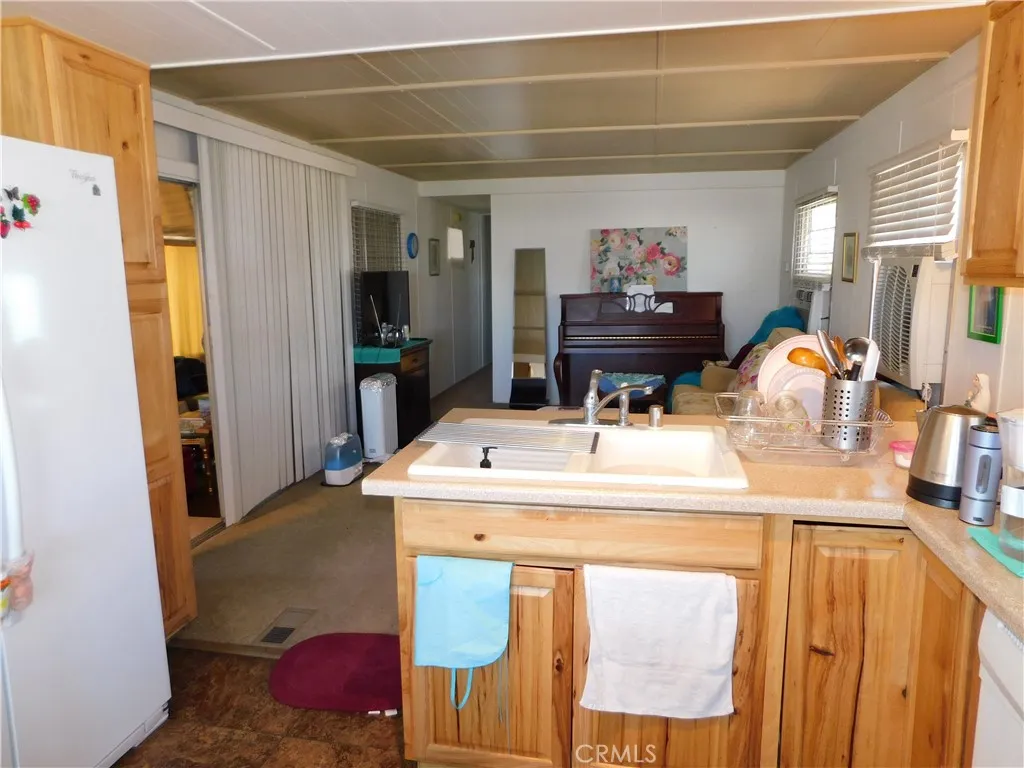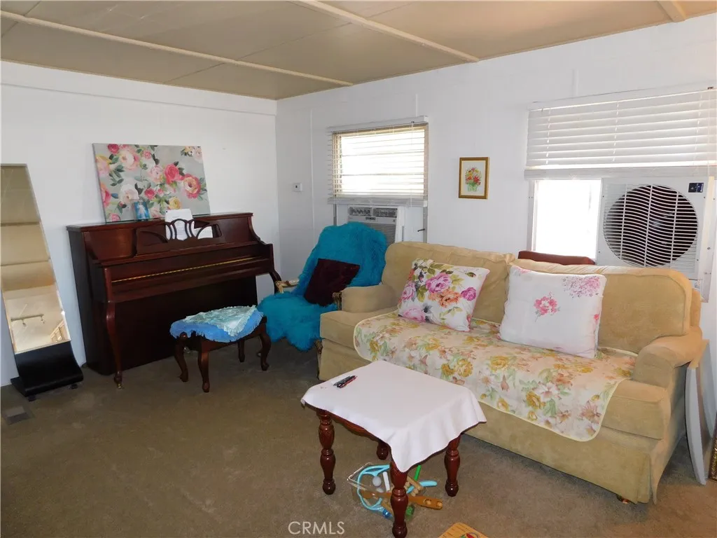 ~Beautiful home, situated at the end of a cul-de-sac, located in Yucaipa's highly desirable 55+ community, Carriage Trade Manor!~Low space rent...Only $420!~Pride of ownership shows throughout with features including: New plumbing throughout the home within last two years, freshly painted exterior, and newer evaporative cooler in living room!~When you come in the front door, you'll find a huge California room with vinyl flooring, blinds for privacy, and endless opportunities for usage, whether it's a gym, office space, or storage!~Spacious and welcoming living room, which offers both an evaporative cooler and wall/window AC unit, is attached to California room through sliding glass doors!~Living room open to the bright and upgraded kitchen, which also offers enough space for a full-size dining room!~Newer appliances include fridge, dishwasher, free-standing gas stove/oven and built-in microwave!~Updated wood cabinets/drawers for all your storage needs!~Plenty of counter space!~Dining room offers more built-in storage and beautiful mountain views!~Queen size primary bedroom with ceiling fan, an abundant amount of built-in closet space, and newer wall/window AC unit!~Newer nest thermostat for furnace!~Full bathroom provides plenty of storage/linen space, upgraded vanity/sink area, newer toilet, and tub/shower combo!~Spare bedroom is full size with ceiling fan, natural lighting, and built-in closet space!~Enclosed patio with security screen door hosts laundry area with included washer/dryer and storage shed!~2-3 car carport (1 covered space)!~Large low-maintenance lot, with pr