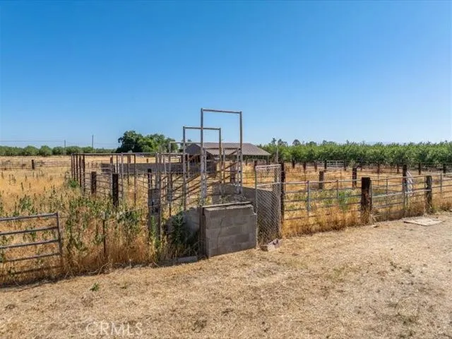 Looking for your own cattle/horse operation setup on irrigated pastures? Welcome to your dream ranch! Nestled on 10 fully irrigated acres within the desirable El Camino Water District, this beautiful 3212 sq. ft. ranch-style home offers the perfect blend of luxury living and country charm. Step inside and be greeted by vaulted ceilings and a stunning floor to ceiling rock fireplace that anchors the spacious living room-ideal for cozy winter nights. The formal dining room offers space for entertaining, while the gourmet kitchen is a chef's dream with granite counter tops, a large pantry, generous pantry, and a generous workspace for culinary creations along with French doors leading to patio area and outdoor BBQ area perfect for entertaining and al fresco dining. The 4-bedroom and 2-bathroom layout includes a luxurious Executive suite featuring a large walk-in closet, jetted soaking tub, and French door access to the courtyard patio that is perfect for slipping into the hot tub. The large laundry room offers a built-in folding area. Designed with functionality in mind, the property includes Dual A/C units, Gated entry, green house, garden area, flourishing rose garden, and lush green lawn areas, 2 large livestock Barns, cattle pens, loading ramp, 2 stud stalls, cross fenced pastures, cemented wash rack area and a newer well. This home is surrounded by an established orchard and provides endless opportunities and privacy. There is even a playhouse for the kiddos! Bring your sheep, cattle, horses or other livestock, and live sustainably, work the land, and embrace the beauty o