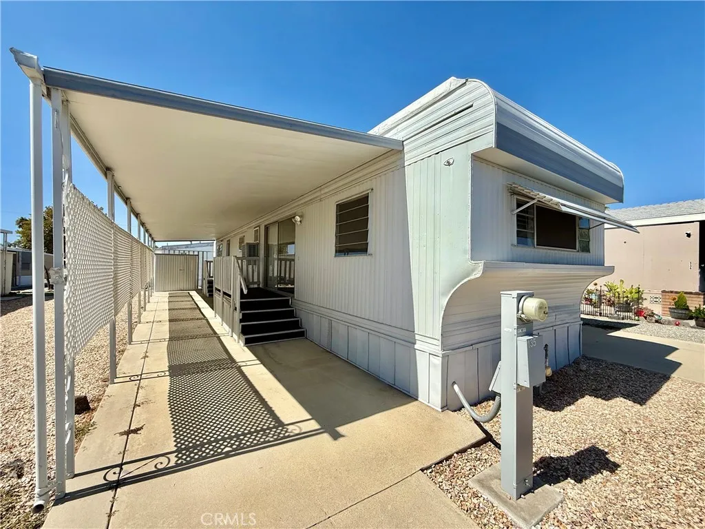 Oldie but goodie single-wide in centrally located Sunburst gate senior mobile home park. Living area has wood laminate flooring, mini and vertical blinds. Kitchen has gas stove, refrigerator, microwave, and loads of counter space. Primary bedroom has mirrored wardrobe door and built-in drawers. Bathroom with large shower, linen closet, and built-in laundry hamper. BOTH forced heat and air conditioning AND newer, economical evaporative cooler. 2 sheds (one with washer hook-up). Park amenities include swimming pool, spa and Clubhouse with recreation room, pool tables, card/game room, banquet facilities, indoor shuffleboard, and more. Affordable senior living!