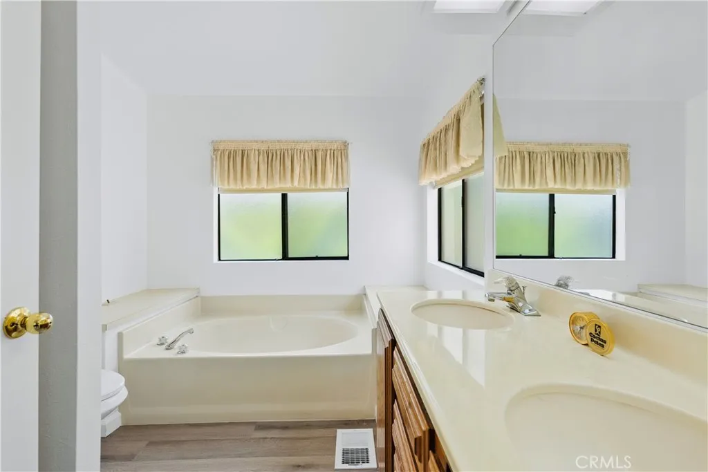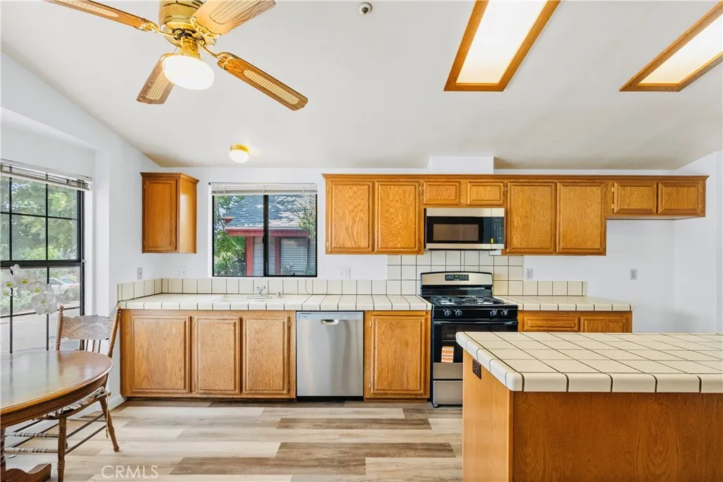 REDUCED FOR A QUICK SALE!!!ATTENTION LOWEST LAND LEASE LISTED IN THIS COMMUNITY AT 1,215.19 A MONTH WONT LAST! This spacious 3 bedroom 2 bathroom Home Has a sought out floor plan, recently updated with new flooring and interior paint, new water heater, new stove, microwave and dishwasher. Also provides central air and heat, 2 car garage, laundry room. Step into a grand entryway with Soaring vaulted ceilings that lead you to the inviting living room, complete with a cozy fireplace and sliding glass doors opening to a spacious patio and side yard. Enjoy the lush greenery, including lemon, orange, and shade trees-perfect for relaxing or entertaining outdoors. The Kitchen is a chef's dream, featuring a large center island with bar seating, abundant counter and cabinet space, and a charming breakfast area by the window with breathtaking mountain views. A formal dining room offers ideal setting for family gatherings and special occasions. The expansive primary suite offers a peaceful retreat with generous closet space and a spacious en-suite bathroom, with dual sinks, a soaking tub, and a separate shower. Two additional bedrooms offer flexibility for guest, office, or hobbies, along with a well-appointed hallway bath with a tub shower combo. Enjoy added privacy with no neighbors directly in front and sweeping mountain views from the front side of the home. Located within a beautiful community, you'll have access to a wealth of amenities, including a sparkling pool, two jacuzzi's, playground, basketball courts, and a community park. Experience the best of comfortable living and co