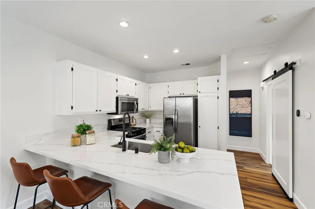 Welcome to this beautifully upgraded condo nestled in the desirable Wagon Wheel community! Step inside to discover fresh interior paint, stylish new LVP flooring throughout, and a bright, modern kitchen featuring sleek quartz countertops, crisp white cabinetry, and stainless steel appliances. The cozy living room is enhanced by a quartz-accented fireplace, and a charming private balcony offers the perfect outdoor retreat. This thoughtfully designed home offers two spacious bedrooms, including a primary suite with a generous walk-in closet. The updated bathroom adds a touch of luxury with its modern finishes. Enjoy the convenience of an attached one-car garage with direct access. Residents of this well-maintained community enjoy access to a sparkling pool and relaxing spa. Ideally located near award-winning schools, the 241 toll road, shopping, dining, and morethis is one you wont want to miss! Come see it today and experience all that Wagon Wheel living has to offer.