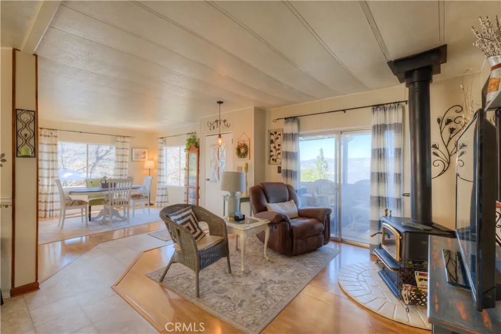 PANORAMIC VIEWS OF LAKE OROVILLE AND MOUNTAINS! Vacation home, Airbnb, or permanent home...you make the choice!! This adorable FURNISHED "cabin style" home sits way up on the mountain with breathtaking views! The home feels so comfortable with beautiful tile and laminate flooring, wood burning stove, decorative tile in the kitchen, open floor plan, lots of windows for natural lighting and spectacular views from almost ALL of the windows!! This lovely home also has an attached covered enclosed back porch to relax and enjoy the great outdoors! The property has plenty of space for gardening, newer pump system for the well, and is just a few miles from the free boat launch up String town road. As a welcome addition, this home comes partially furnished! Call today for your appointment to see this beautiful home and property!!