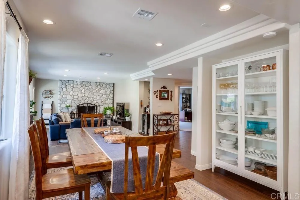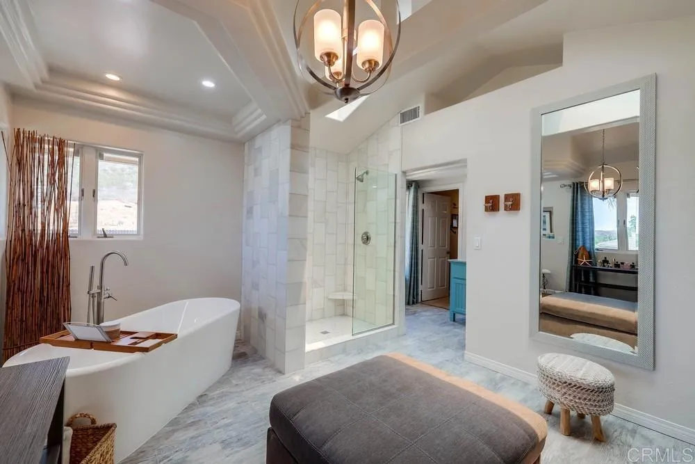Possible Assumable Loan in the LOW 2's! Nestled in the sought-after SDCE, this stunning two-story residence is ready to call home. From its eye-catching Spanish-style architecture to its exceptional curb appeal, its impressive. Step inside to cathedral ceilings, large windows, skylights, and multiple sliding doors that flood the home with natural light. Designed with entertaining in mind, this home offers a spacious living room, family room, formal dining area, and an eat-in kitchen perfect for gathering. Cozy up on cool evenings with two fireplaces downstairs. Originally built as a 4 bedroom, it also includes a flexible 5th bedroom that can serve as a home office, guest room, or creative space. The primary retreat is complete with its own fireplace and a private balcony offering mountain views. The spa-inspired primary bathroom features an oval free-standing tub, walk-in marble shower, dual vanities, walk-in closet and large space for storage. Exterior is a fully fenced lot with mature, drought-tolerant landscaping, an expansive patio area perfect for entertaining, and a vacant upper lot offering endless potential, all framed by sweeping views. Built with 2x6 construction, the home boasts excellent insulation and a remarkably quiet interior. Ideally located near a cul-de-sac with limited through traffic. As part of the San Diego Country Estates, you'll enjoy resort-style amenities including parks, schools, sparkling pools, golf, tennis, pickleball, scenic hiking trails, equestrian, and more.