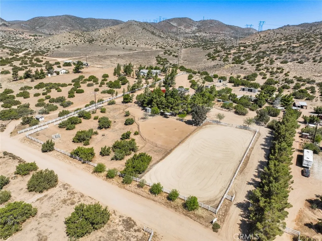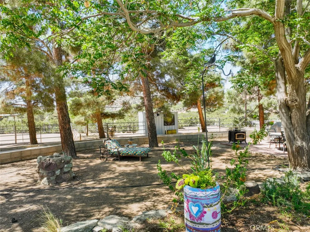 Welcome to The Oasis Ranch. Designed for horse enthusiasts, the 5.35 acre fully fenced property features an impressive low dust horse arena, 5 horse pens with 5 mare hotels, a hay shead and a washing station. Four sheds with electricity, two of which also have water. This ranch features a dog run/kennel and a chicken coop. A well provided water to the property. It has fenced gardens, with many mature trees (including fruit and nut trees) to shade & engulf this lovely landscaped horse property. The home has a circular driveway and is just minutes away from 14 Freeway.
