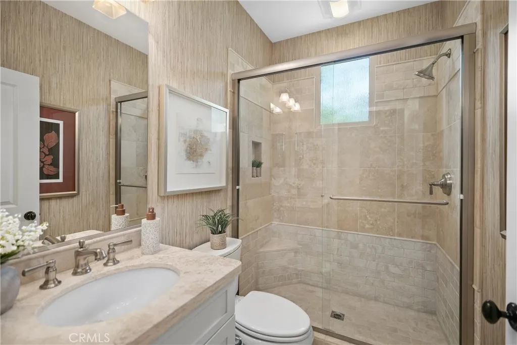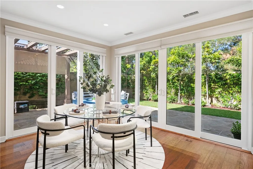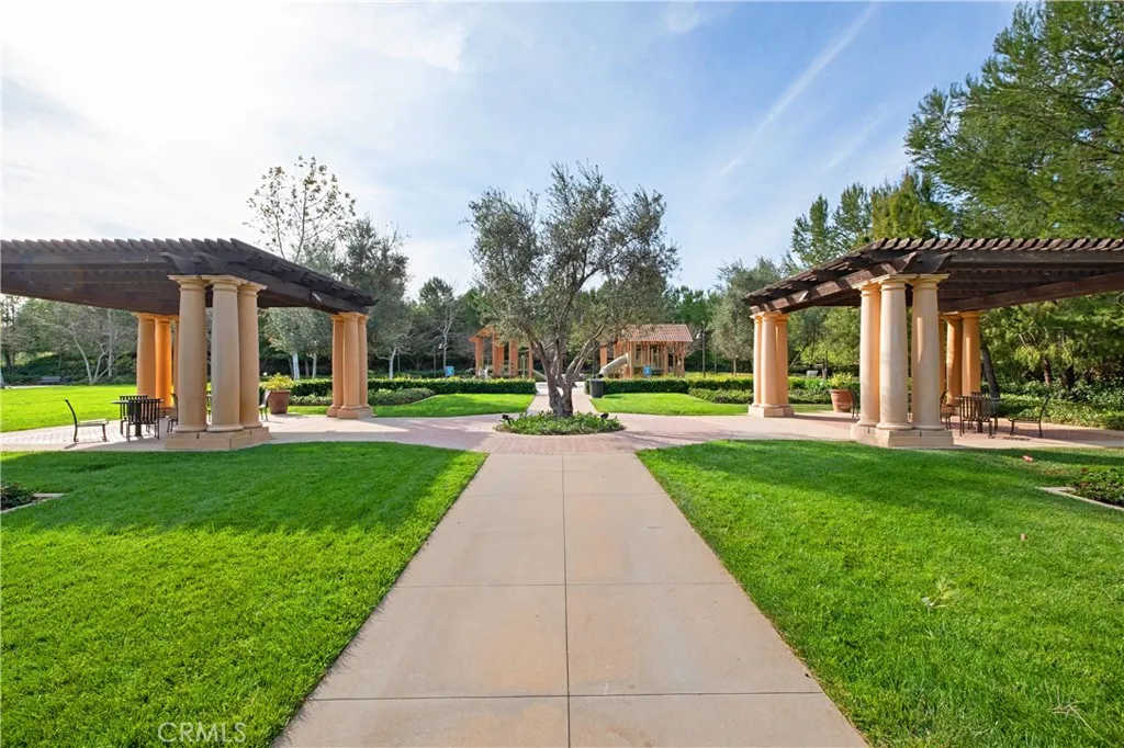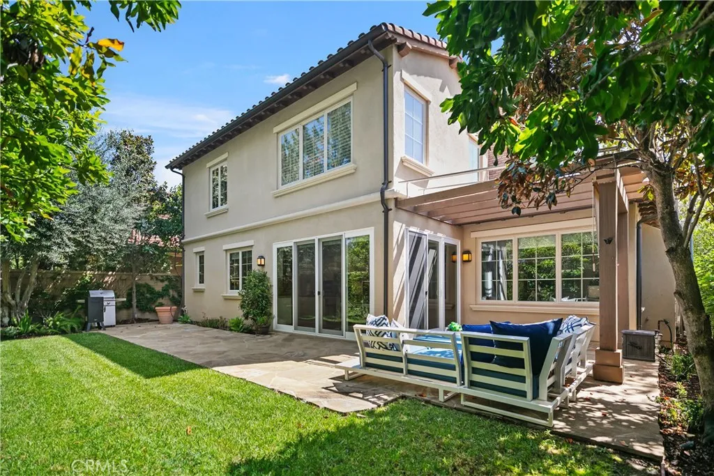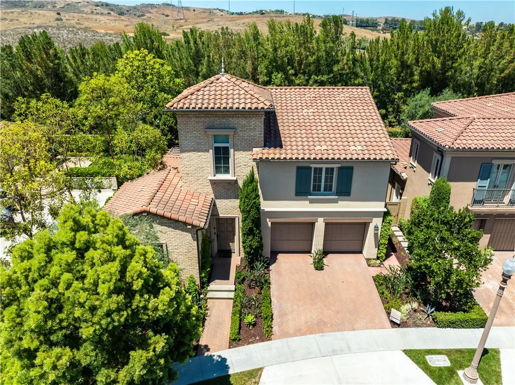 Presenting the Showcase FORMER MODEL HOME with the utmost in premium upgrades in the prestigious 24/7 guard-gated community of Laguna Altura, nestled in the serene Laguna Coastal Hills and offering unmatched tranquility and resort-style living. This Builders signature Cortona" former model is ideally situated on a PREMIUM CORNER LOT with no neighbors behindoffering enhanced privacy and natural charm. Boasting nearly 2,500 square feet of luxury living, the residence features 4 bedrooms, including a MAIN LEVEL BEDROOM with FULL BATH, 3 full baths total, and an upstairs office with custom built-ins. Meticulously designed, this former model showcases high-end upgrades throughout and a flowing open-concept layout. From the moment you arrive, youre greeted by lush landscaping, iconic olive trees, and an elegant two-story foyer. The main level includes a spacious great room, dining area, and chef-inspired kitchenperfectly connected for effortless entertaining. Notable highlights include rich hardwood flooring, oversized windows, dual bi-fold doors, custom light fixtures, a floor-to-ceiling stone fireplace, designer window treatments, and upgraded cabinetry. The gourmet kitchen is outfitted with a large island featuring a contemporary butcher block surface, stainless steel appliances, designer stone countertops and backsplashes, and a spacious laundry room with added cabinetryideal for storing kitchenware and more. Upstairs, retreat to the luxurious primary suite with a spa-like bathroom, alongside two secondary bedrooms and a dedicated office with built-in desk and file storage. T