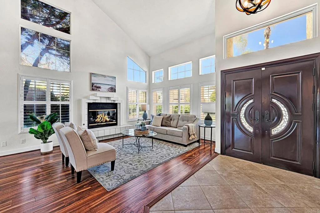 REDUCED PRICE for this stunning four-bedroom offering panoramic views of the surrounding hills, a spacious 3-car garage, and a sparkling saltwater pebble pool with lush tropical landscaping. This corner lot has a large private yard that includes a freestanding pergola and beautifully manicured grounds, creating the ideal outdoor space for entertaining or relaxing. Inside features soaring two-story ceilings and expansive, light-filled rooms create a a bright and open feel. The home features four generously sized bedrooms, including a luxurious primary suite. Main living areas showcase updated lighting, durable Pergo luxury vinyl plank flooring, and new paint throughout. The open-concept kitchen overlooks the pool, offering the perfect backdrop for everyday living and seamless indoor-outdoor entertaining. Upstairs, the primary suite is a true retreat, complete with a private deck, a large walk-in closet, and a spa-inspired bathroom featuring dual vanities, a soaking tub, a new tiled shower, and a large walk-in closet. Recent improvements include a new HVAC system, a complete roof replacement, new appliances, 3 new sliding doors, and modernized finishes throughout. With thoughtful updates, elegant style, and breathtaking views, this move-in-ready home offers the perfect balance of comfort and sophistication.