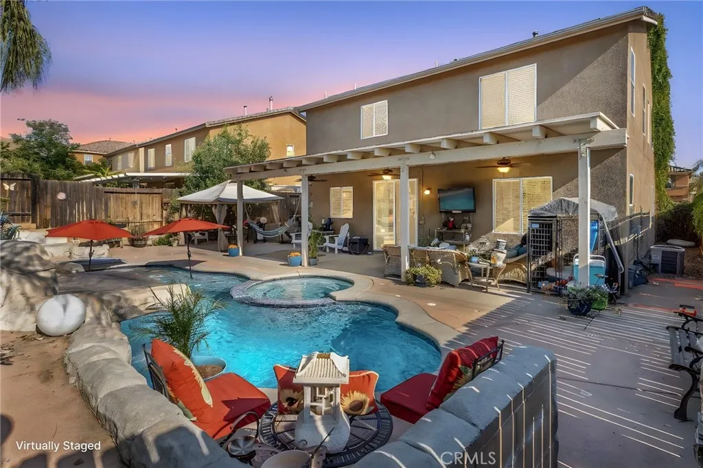$7000. For buyers closing cost paid by seller.!!!!! Welcome to 2168 Stonewood St., Mentone, CA 92359 4 bedrooms| 2 1/2 Baths | 2,786 Sq Ft | 7,200 Sq Ft Lot | Owned Solar | Built in 2007 Tucked into the scenic hills of Mentone, this stunning residence offers the perfect blend of comfort, beauty, and lifestyle. With 2,786 square feet of thoughtfully designed living space, 4 spacious bedrooms, and 2 1/2 bathrooms, theres room for everyone to live, work, and unwind. From the moment you arrive, youll be greeted by a charming front yard anchored by a tranquil water fountain a hint of the serenity that awaits inside and out. Step into your private resort. The backyard is a showstopper, built for both relaxation and entertaining. A natural rock waterfall flows into a sparkling pool, complete with built-in seating tucked beneath the stone. Nearby, a gas fire pit invites cozy evenings under the stars, while the attached spa offers a peaceful retreat surrounded by the soothing sound of falling water. Lush landscaping, mature fruit trees, and a green hillside behind the property provide beauty and privacy in equal measure! Other highlights include: Owned solar panels for energy efficiency and low utility bills 2 car garage Family-friendly neighborhood with top-rated schools Peaceful location with a true sense of community Included in the sale of this epic home is a Epson projector TV !!! This is more than a home its a lifestyle upgrade. 2168 Stonewood St. is a rare opportunity in one of Mentones most desirable neighborhoods. Come see it in person. Your private paradise is waiting.