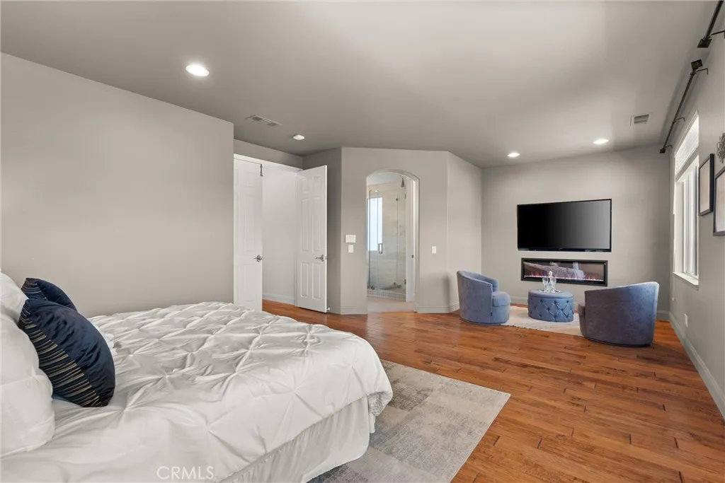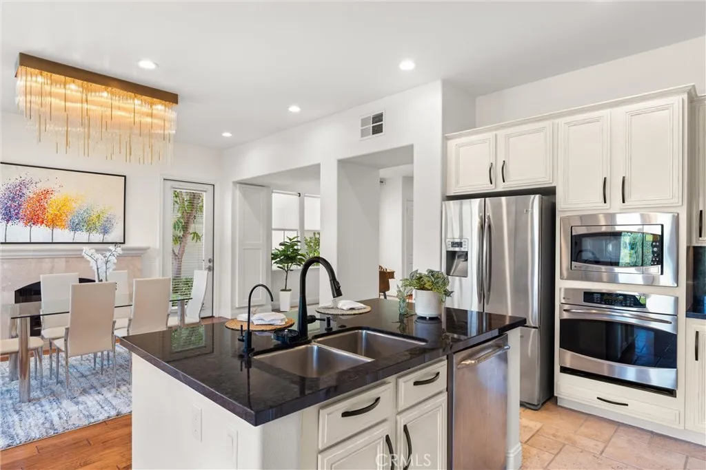 Imagine waking up every morning to sweeping golf course and hillside views in this beautifully updated Palatino home inside the guard-gated Calabasas Park Estates. From the moment you arrive, the charm is undeniablean arched entry and private gated courtyard lead you to a striking iron and glass front door. Step inside and youre welcomed by soaring 10-foot ceilings, wide-plank hardwood floors, and an open, airy layout that feels both elegant and inviting. The heart of the home is the upgraded kitchen, where youll enjoy cooking on granite counters with stainless steel appliances and gathering around the large center island. Perfectly designed for both everyday living and entertaining, the kitchen flows seamlessly into the dining and living areas, where a modern chandelier and fireplace set the tone for warm, memorable evenings with family and friends. Just beyond, three sets of French doors open to your backyard retreatlow-maintenance, with lush artificial turf, and panoramic views that stretch across the Calabasas Country Club golf course and surrounding hillsides. Upstairs, the primary suite becomes your private sanctuary, complete with its own sitting area and electric fireplace, a remodeled spa-like bathroom, and a custom walk-in closet for impeccable organization. Wake up to peaceful golf course views every day. An adjoining office/loft (formerly a fourth bedroom) offers a versatile space for work or relaxation, and can easily be restored to its original design if desired. A convenient upstairs laundry room makes daily routines effortless. With a brand-new 5-ton AC and