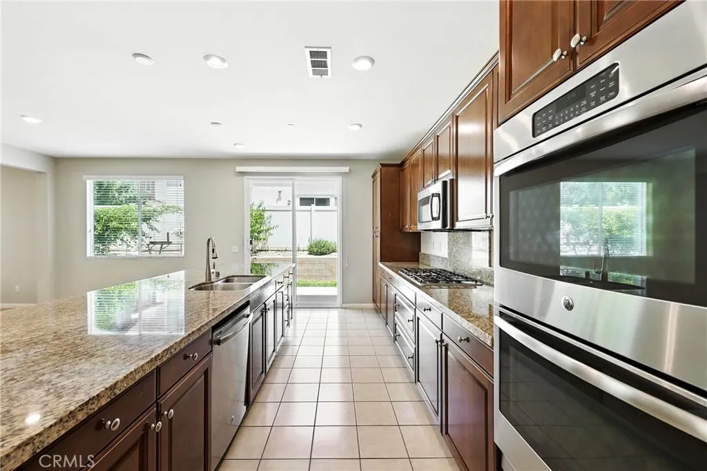 Welcome to the highly sought-after College Park community in Chino! This beautifully maintained home, built in 2016, offers 2,862 sq ft of spacious living with 5 bedrooms and 3 full bathrooms perfect for large or multi-generational households. The first floor features a private bedroom and full bathroom, ideal for hosting guests or accommodating extended family. Upstairs, youll find an open loft and a built-in workspace, making working or studying from home both comfortable and convenient. The generous primary suite is filled with natural light and boasts dual vanities, a soaking tub, and an oversized walk-in closet. A standout feature of this home is the dual kitchen layout: the main kitchen is equipped with granite countertops, double ovens, a large center island, and a walk-in pantry, complemented by a separate prep kitchen perfect for cooking enthusiasts and families who love to entertain. The home also comes with solar panels to help reduce energy costs. The backyard is low-maintenance and ideal for outdoor dining and gatherings. A two-car garage plus additional driveway parking provide ample space for vehicles and storage. Just a short walk to local parks and community amenities, youll also enjoy College Parks resort-style living, featuring two sparkling swimming pools, a fitness center, clubhouse, scenic parks, playgrounds, and sports courts. With a prime location close to shopping, dining, and major freeways, this home offers everyday convenience along with a vibrant community lifestyle.