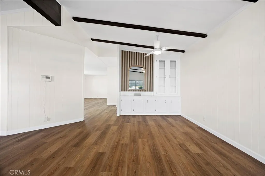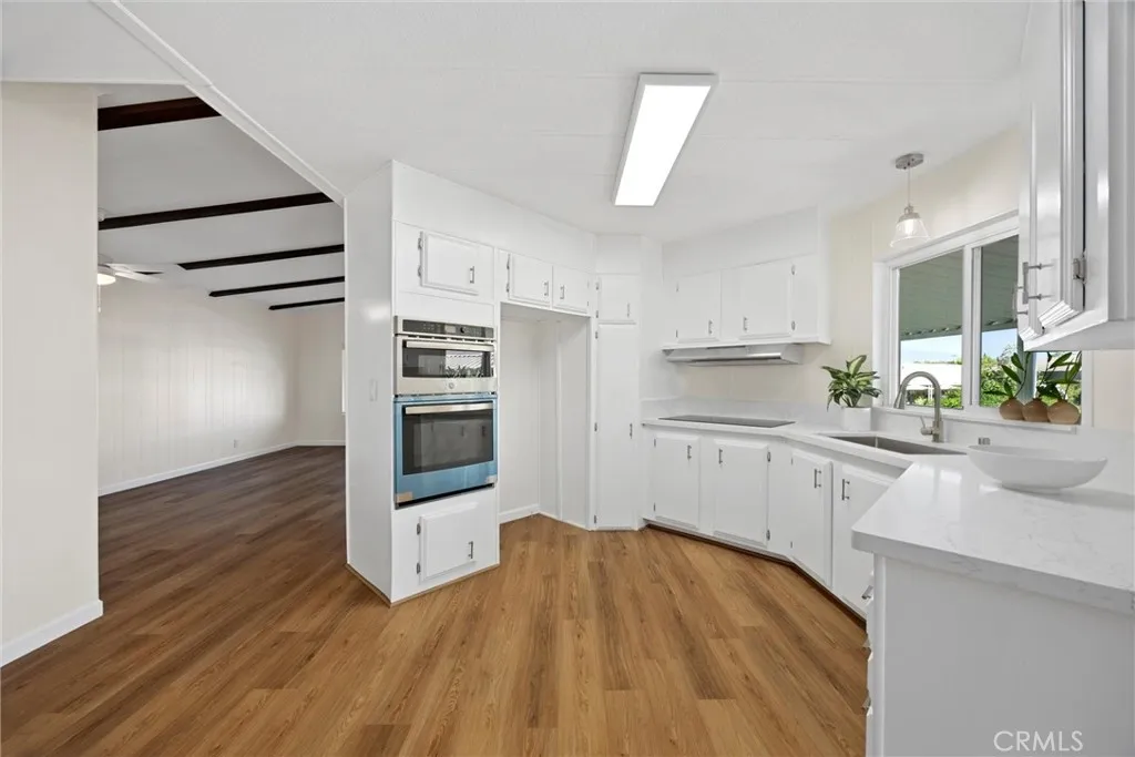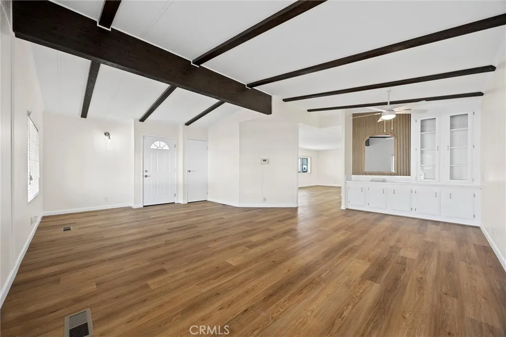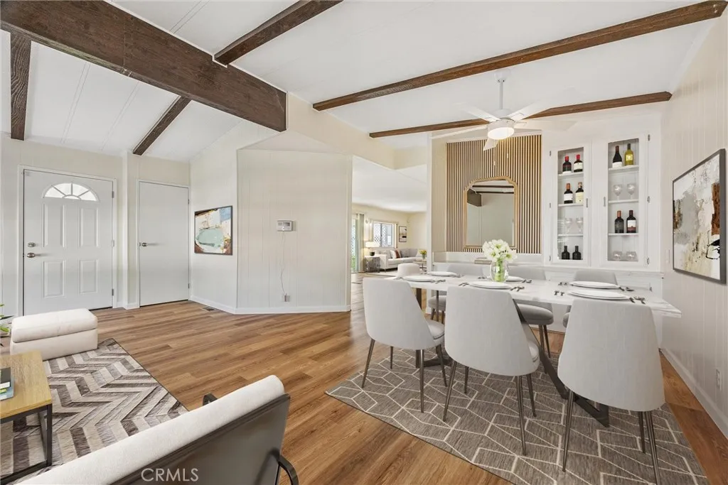Step into this beautifully updated 2-bedroom, 2-bath manufactured home nestled in the tranquil Kern Canyon Estates. Thoughtfully renovated, this home blends modern design with inviting warmth. Enjoy wood-like flooring, fresh interior paint, and the convenience of central air and heat for year-round comfort. The stylish kitchen features striking quartz countertops, stainless steel appliances, updated cabinetry with sleek hardware, and a versatile built-in area ideal as a desk or coffee bar, accented with tasteful wood slats. Additional built-in cabinetry offers excellent storage solutions. The primary suite includes both a separate shower and a soaking tub for added relaxation, with both bathrooms enhanced by quartz counters and sophisticated mirrors. Outdoors, unwind on the covered patio or take advantage of the backyard storage sheds. Community amenities include a sparkling pool, pickleball court, and a putting greenoffering a lifestyle of ease and enjoyment.