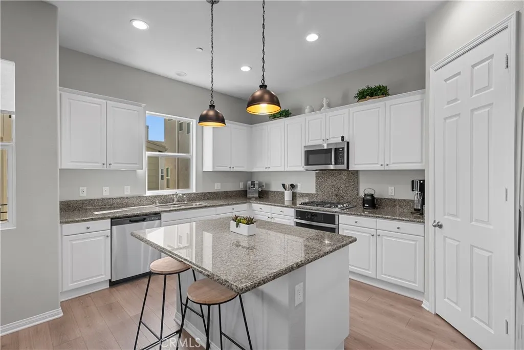Welcome to Five Point! This is one of the most sought-after communities in the area, known for its vibrant lifestyle, resort-like amenities and beautifully designed homes. This meticulously crafted newer construction property offers modern elegance and top-notch amenities, perfect for todays lifestyle. Located in a desirable neighborhood, the home features a tri-level layout with abundant natural light and upgraded vinyl plank flooring throughout, creating a warm and inviting atmosphere. As you enter through the front door, the first level offers an ample space for a small office or seating area and access to your private 2 car garage. At the heart of the home, the spacious living area allows for a seamless flow from the living room to the private deck, making it ideal for entertaining. The gourmet kitchen boasts stainless steel appliances, granite countertops, a large island, and ample pantry closet space, transforming meal prep into a joy. Also on the main level is the laundry room, a bedroom and full bathroom. On the top level, the primary bedroom includes a master suite that serves as a private oasis, complete with a walk-in closet and a spa-like en-suite bathroom featuring dual vanities and a glass-enclosed shower. The secondary bedroom also offers a walk-in closet and a full private bathroom. Step outside on your second private deck to enjoy a beautiful view with your morning cup of coffee or peaceful evenings under the stars. This home is designed with energy efficiency in mind, equipped with Solar, EV ready Charging, modern insulation and energy-efficient appliances