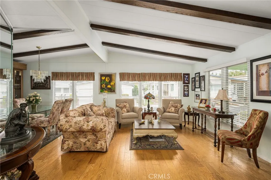 WELCOME TO THIS EXCLUSIVE 55+ COMMUNITY (THE GROVES) WHERE YOU SHARE IN THE OWNERSHIP OF THE LAND EACH HOMEOWNER OWNS 1/533 SHARE OF GROVES HOMEOWNERS, INC. WITH NO RENT SPACE AND LOW MONTHLY MAINTENANCE FEES, 24 HOUR GUARD GATED ENTRANCE LOCATED IN ONE OF THE MOST COVETED SENIOR COMMUNITIES IN ORANGE COUNTY. THIS EXPANSIVE TWO BEDROOM, TWO BATH HOME HAS BEEN LOVINGLY CARED FOR OVER THE YEARS, UPGRADED FEATURES INCLUDE, LAMINATE COUNTERS IN KITCHEN THAT HAS THE LOOK OF GRANITE, LAMINATE FLOORING THROUGHOUT MAIN ROOMS OTHER THAN CARPET IN BEDROOMS, BRIGHT AND OPEN FLOOR PLAN WITH HIGHER CEILINGS IN LIVING AND FAMILY ROOM AREA, ROOF WAS INSTALLED IN 2021. BEING A RESIDENT OF THE GROVES OFFERS YOU RESORT STYLE LIVING WITH, FITNESS CENTER, SAUNA, TENNIS, PICKLE BALL, BASKETBALL LAWN BOWLING, PUTTING GREENS, YEAR ROUND HEATED POOL AND SPA, LOVELY PARK AREA, BBQ AREAS, RV PARKING AND CAR WASH. MOVE INTO THE CLUBHOUSE AND FIND EVEN MORE FEATURES INCLUDING, CARD ROOMS, BILLIARDS, BANQUET FACILITIES, PING PONG, HAIR SALON, CERAMIC STUDIO,MUSICALS, PLAYS, SHOWS, BINGO, AND A HUGE FOURTH OF JULY PARADE, ALSO A FULLY EQUIPPED WOOD WORKING SHOP, DISCOUNTS IN COX TV AND INTERNET, LAST BUT NOT LEAST IS THE COMMUNITY GARDEN