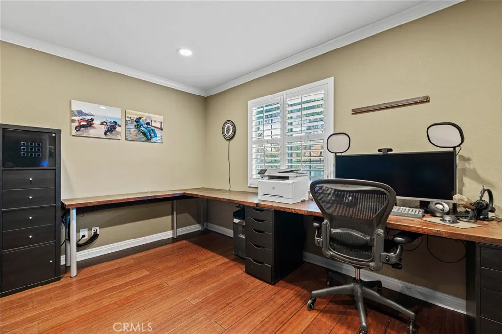 IMMACULATE and REMODELED cul-de-sac home near the top of Hillcrest shows like a model home with NO HOA or Mello-Roos! Pride of ownership is evident and the beautifully landscaped front yard provides great curb appeal with mature palm trees, a river rock wall, and an EXTRA WIDE DRIVEWAY THAT CAN ACCOMMODATE AN RV/CAMPER! Upon entry through the covered front porch, youre greeted into the light & bright home that's been FRESHLY PAINTED and is adorned with engineered bamboo wood flooring that is durable and water resistant and spans the entire first floor. Your stunning open-concept kitchen has been gorgeously remodeled with espresso soft-close cabinetry with pull out drawers, Ogee edge granite countertops, mosaic tile backsplash, pendant lighting, stainless steel appliances and sink, and a pantry. It opens up to the family room designed for entertaining with a surround sound system, ceiling fan, and a built-in entertainment center surrounding a cozy fireplace. Your first floor also includes a powder room and laundry room complete with plenty of cabinetry, a granite countertop, and a laundry chute from your primary suite. Head upstairs where youll find a spacious loft, 4 bedrooms, and 2 full bathrooms. Your primary suite features cathedral ceilings along with a double sink vanity, walk-in shower, soaking tub, spacious walk-in closet, and newly installed tile floors. Plantation shutters, crown molding, and recessed lights adorn the home adding to its beauty. Entertain and enjoy relaxing evenings in your tastefully landscaped backyard featuring outdoor lamp posts, a built-in BBQ,