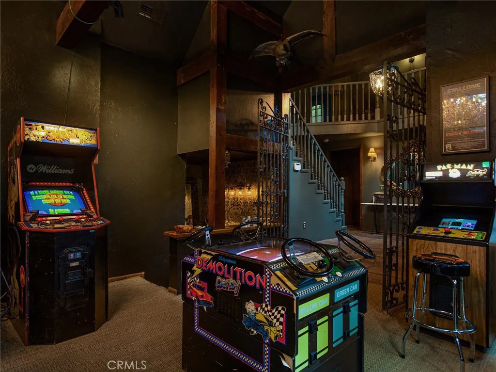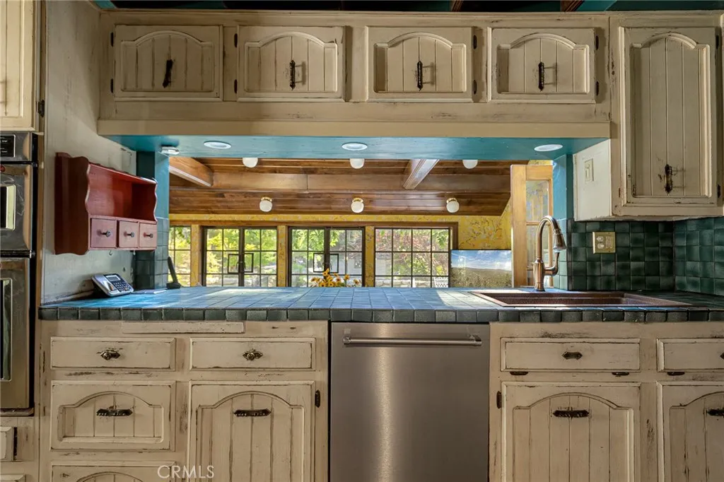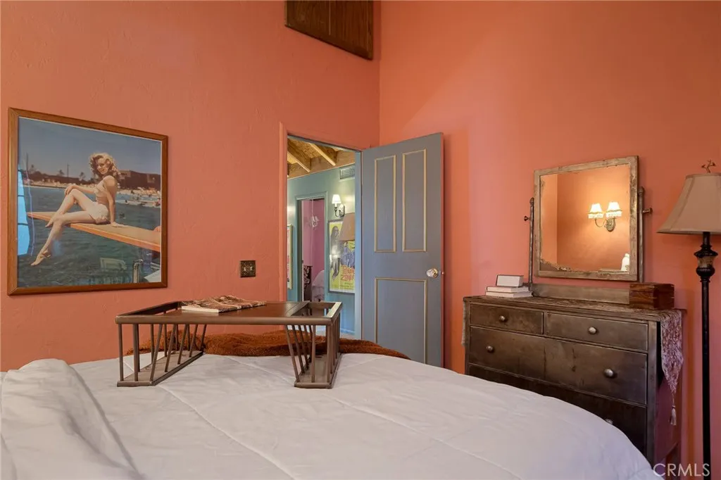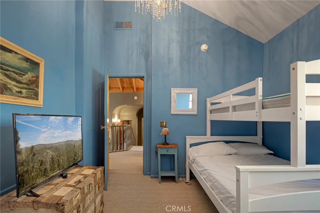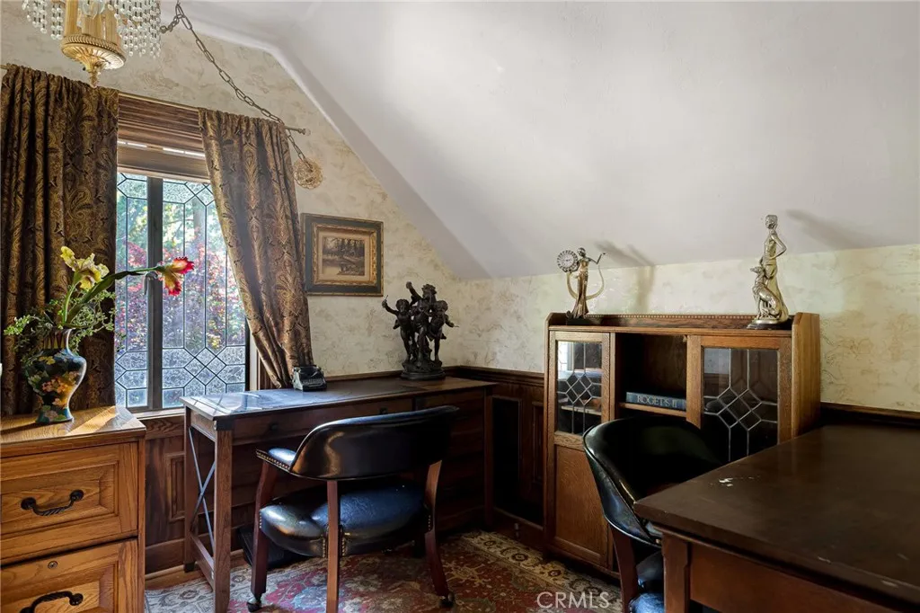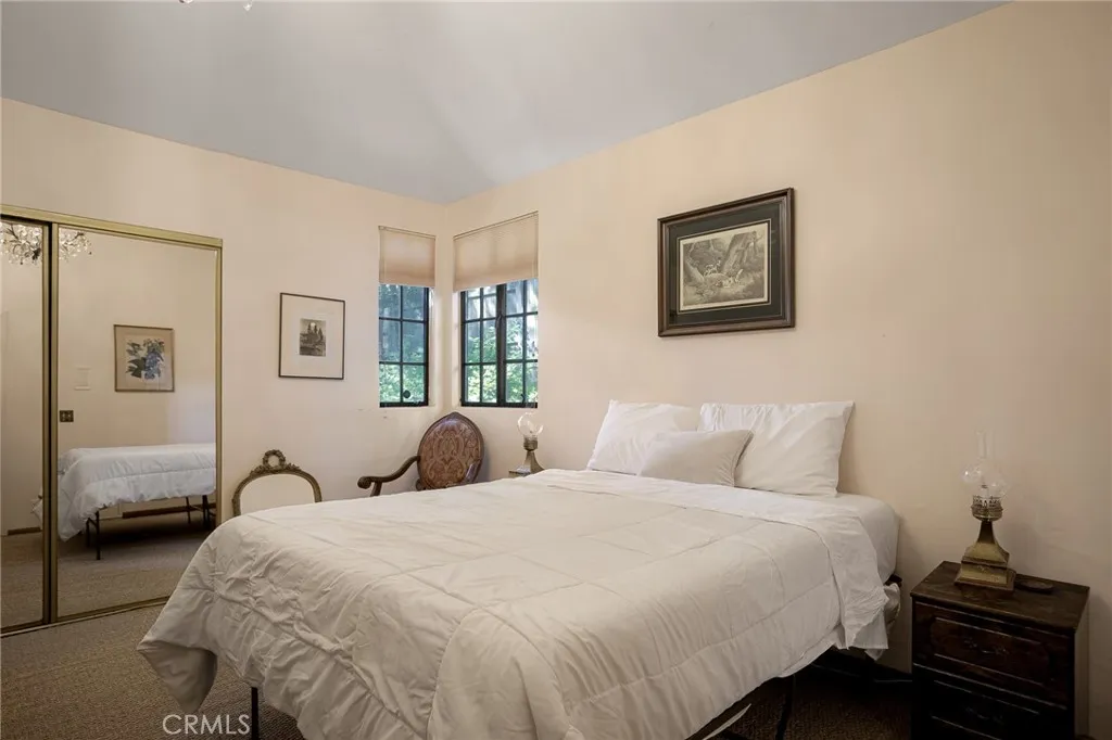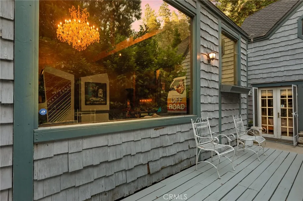 Featured on Zillow Gone Wild, this legendary cabin whispers stories of old Hollywood charm and elite escape. Long rumored to be the secret hideout of the Queen of Hollywood, Myrna Loy, The Greystone Manor continues to attract discerning travelers, artists, and tastemakers from around the world. Behind the gates, a winding drive leads to this rare gem, privately situated on an acre. The atmosphere is cinematic: dappled sunlight through towering pines, a stone fireplace flickering in the great room, and expansive windows framing views that shift with the seasons. Surrounded by vibrant oaks, whispering pines, mature bamboo, and bursts of seasonal color from Japanese maples, the setting is enchanting. With parking for over 10 vehicles and a 2-car garage, the manor welcomes guests with a sense of grandeur. Once inside, the main living room features a classic stone fireplace and vaulted open-beam ceiling, paired with rich hardwood floors. The country-style galley kitchen features imported slate flooring that flows seamlessly into the formal dining room, breakfast nook, and sunroom, creating a cohesive old-world warmth. Stained glass windows and French doors enhance the ambiance, while the chandelier-lit dining room opens directly to stone patios, perfect for al fresco meals beneath the stars. The primary suite is nothing short of magicalcomplete with a custom stone grotto waterfall shower. Just beyond, a whimsical through the looking glass hallway leads to an intimate theater roomideal for screening vintage classics with friends and family. Upstairs, youll find four more guest be