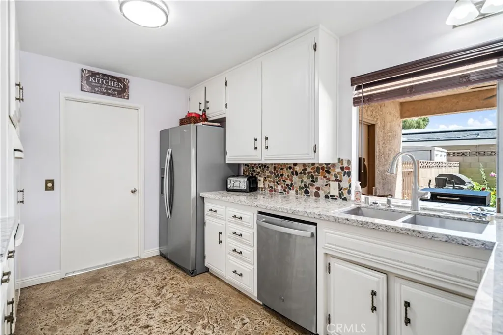 Welcome to your next oasis! A charming and updated single-story home offering space, style, and flexibility! This 3-bedroom, 2-bathroom gem includes an optional 4th bedroom (just needs a wall!) and is packed with thoughtful upgrades throughout. The kitchen features beautiful granite countertops, white cabinetry, stylish pebble backsplash and double oven. All complemented by stained concrete flooring with both wood-look and textured finishes that add warmth and character. The spacious primary suite includes a generously sized bathroom with ample granite counter space, while the secondary bathroom is equally updated and polished. Outside, you'll love the large backyard with covered patio, mature landscaping, block wall fencing, and wide side yard access, perfect for storing a boat, trailer, or extra toys. The front yard impresses with a beautiful brick walkway, a welcoming covered porch, and clean curb appeal. Located on a quiet cul-de-sac in a well-maintained and established neighborhood, this home offers a peaceful setting with room to grow. The finished garage features epoxy flooring, and the overall layout is ideal for entertaining or everyday living.