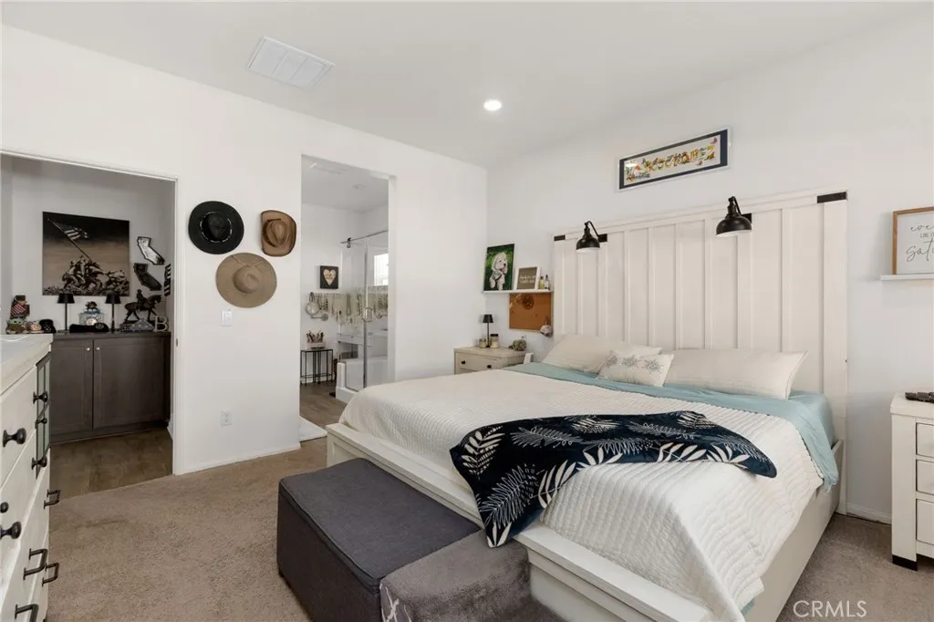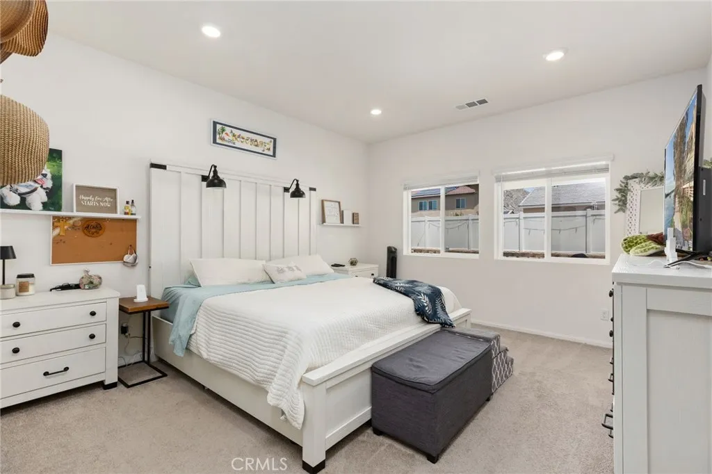 PRICE IMPROVEMENT!! Over $100K in upgrades including RV PARKING, GOLF PUTTING GREEN and SPA HOOK-UPS! This beautiful single-story home also features a modern and low-maintenance layout in a CUL-DE-SAC. An open-concept floorplan with high ceilings in the great room with a kitchen island and breakfast bar area, QUARTZ countertops, smoke-stained maple shaker-style cabinetry, stainless-steel appliances, dining area with slider to the backyard and, a 2-car garage. This truly modern home has all the SmartHome features expected along with a camera security alarm system, water softener system, and is fully landscaped and irrigated in the front yard. The backyard is an entertainer's dream! Backyard is fully done with Astroturf, golf putting green and chipping squares, concrete patio and concrete pad for backyard entertainment and potential barbeque area with additional gas outlets. Retaining wall with irrigation line included. Home has SOLAR panels! Backyard also has spa hook-ups. Patio covers in front yard and backyard. Plus, the extended driveway has RV PARKING with a doublewide vinyl gate to the backyard and two outlets for 50 amp. Homeowners will enjoy easy access to a toddler lot in the community, nearby public parks, shopping, dining, and entertainment.