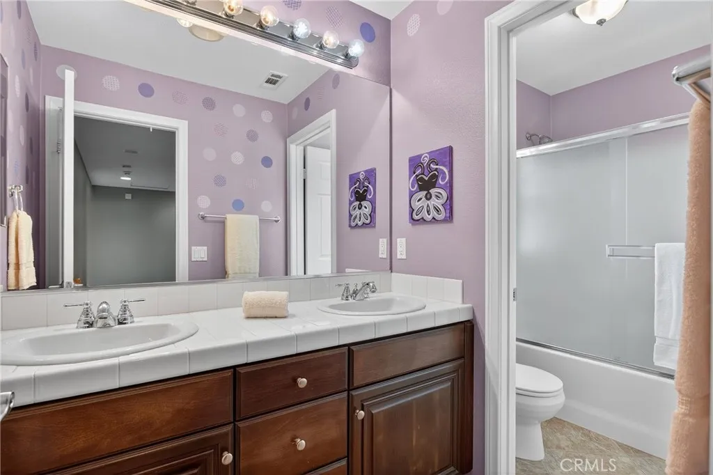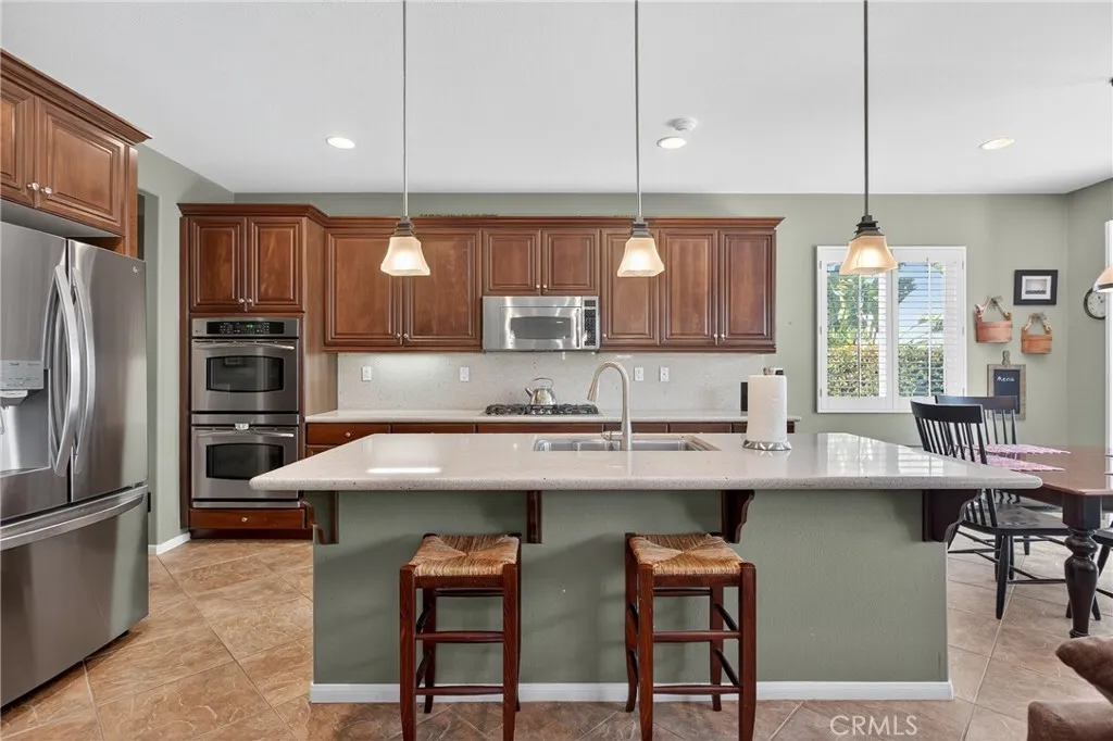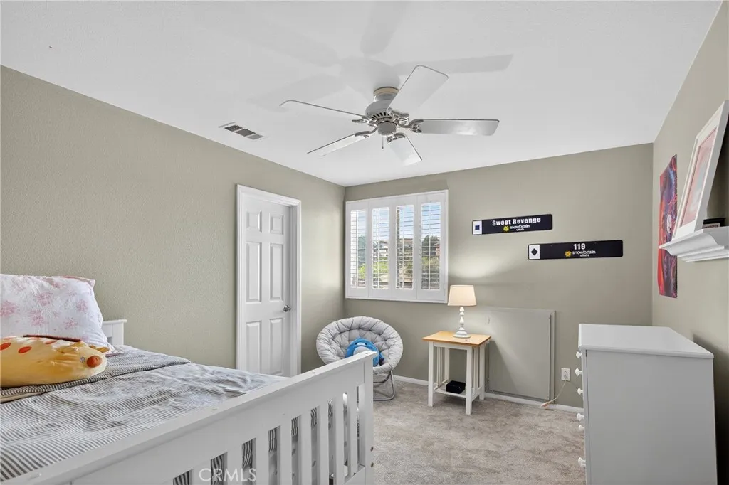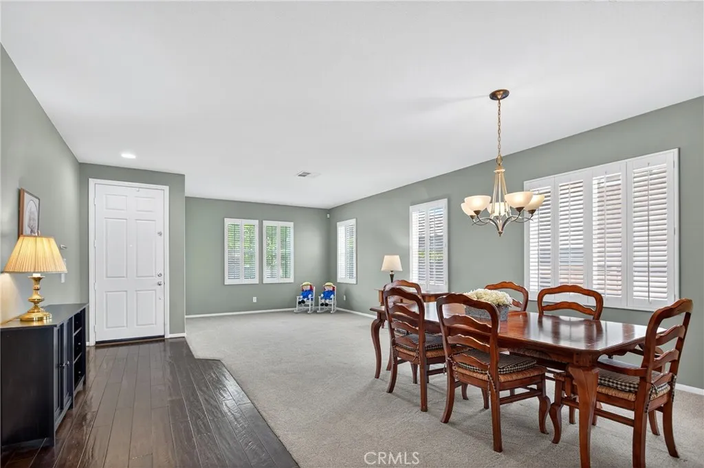 This home is located in the Morgan Hill Community with an incredible Resort Style Clubhouse and HOA Amenities. This 5 bedrooms, 3 bathrooms, 2726 Sq. Ft. home has 2 Downstairs bedrooms and a Bathroom with a walk in shower. Perfect if you need an area for an in-law suite or guest room and an office. This home has a Formal Living room/Dining room as you enter, followed by an open concept Kitchen/Nook/Family room area. The Gourmet Kitchen has a center Island with a convenient sink and bar area for eating, walk in pantry for additional storage, Stainless Steel appliances including a Double Oven, and ample kitchen cabinets, including a Butler's panty. This beautiful home includes Plantation Shutters throughout and new neutral colored carpet. Upstairs has a spacious Primary Suite with a soaking Tub and separate walk in shower, and Dual sinks. All upstairs bedrooms have walk-in closets. The Water Heater was installed in 2023. Conveniently located near shopping, Restaurants, and the infamous Temecula Valley Wineries, and is freeway convenient. The Morgan Hill Community HOA includes an incredible Clubhouse, Pools, Spa, Pickle Ball and Tennis Courts, Weight and Exercise Room, Several Meeting Rooms, and an area to Entertain with a kitchen, Pool Table, Poker Table Game Room, Indoor Play area for children as well as a shaded Tot Lot. Also, conveniently located Galleron Park is nearby that not only has a large sports area but also a dog park area. It is located in the Temecula Unified School District, including the most sought after Great Oaks High School, Tony Tobin Elementary and Vail