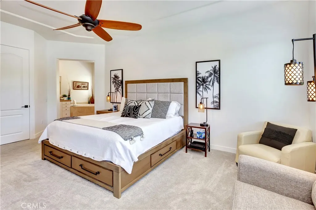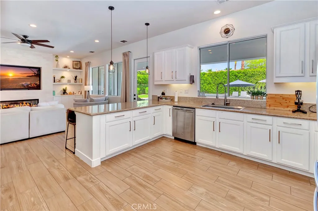 This is an absolute show stopper! FULLY FURNISHED Residence 2 plan with 6 bedrooms & 4.5 bathrooms completely upgraded. Wide plank wood tile flooring flowing into the open concept living space. Quartz and Granite counters, upgraded cabinets, 5 1/2 inch baseboards, built in fireplace, 8ft doors, and 10ft ceilings. Casita excellent for additional family or to rent out separately. Amazing air conditioned garage converted into a game room with flooring, built in refrigerator, foosball, shuffle puck, & pool table etc... This home has it all! Don't overlook the incredible private backyard perfect for entertaining. Features include newer pool & spa, Pergola covered patio, fire pit, & $10,000 worth of Sonos speakers. Orchard is approved for 5 short term rentals per year during the festivals. Perfect for a primary or secondary home with the ability to rent during festival season.
