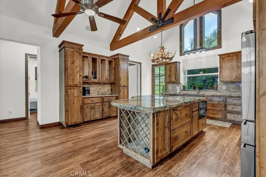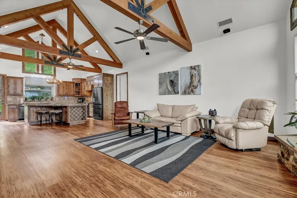Campbell Creek prime location, nestled on nearly 10 acres of picturesque landscape with breathtaking views. In the process of merging the two parcels making a total of 9.55 acres (Lender Friendly). This exceptional custom home offers 3-bedroom 2-bath home with a blend of luxury and tranquility. With its pictorial views from the custom windows, every room is bathed in natural light and framed with stunning scenic views. The rustic beam ceiling adds charm and warmth to the spacious interior, making it perfect for cozy family gatherings or entertaining guests. The heart of this home is a chef's paradise featuring a state-of-the-art kitchen with granite countertops, a grand island, and high-end appliances including a double oven and 5-burner gas stove. Whether you're an avid cook or love hosting parties, this kitchen will exceed your expectations. Third bedroom is being used as an office. Outside, the property is a haven for horse enthusiasts. It includes meticulously fenced and cross-fenced horse corrals, an expansive arena pad with an electrical setup to add arena lights, and automatic waterers for convenience. The property boasts two robust wells, each with 200 Amp service, ensuring a plentiful water supply. Four 40-foot high-cube Seatrains provide exceptional storage capacity, each outfitted with 100-amp electrical service. One unit includes a full bathroom, offering added versatility. For RV enthusiasts, the property features one 30-amp and two 50-amp hookups, making it perfectly suited for motorhomes or travel trailers. A third bathroom, located in the Seatrain near the m