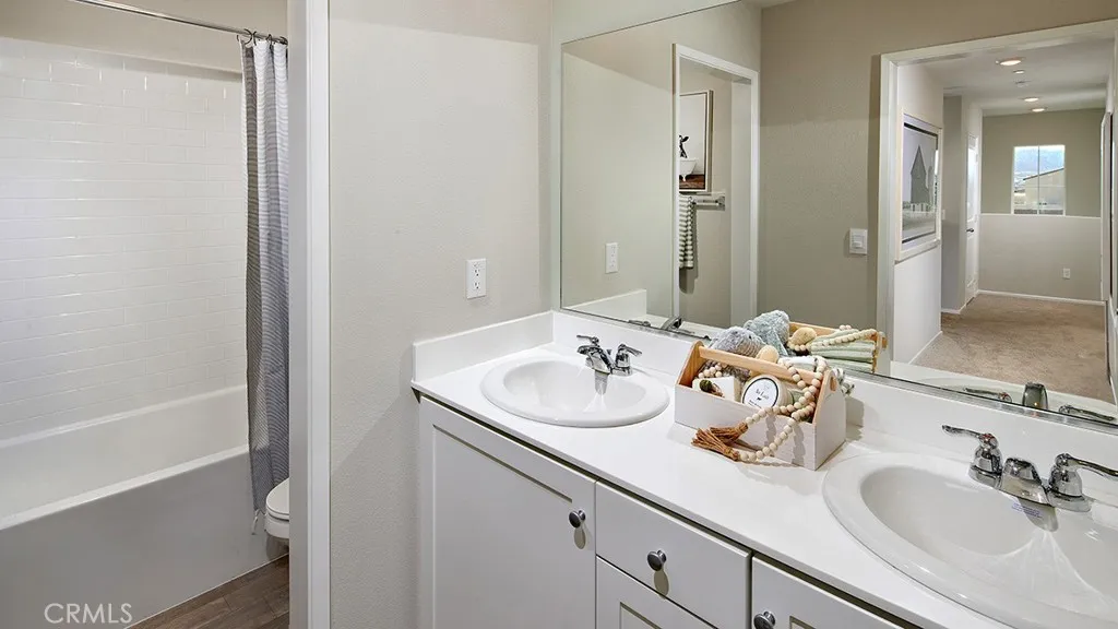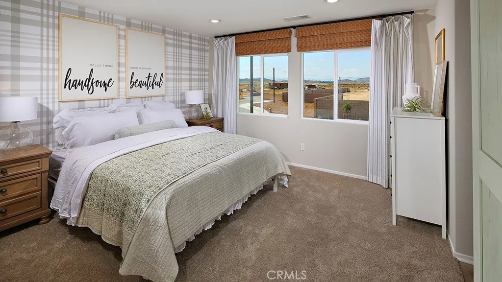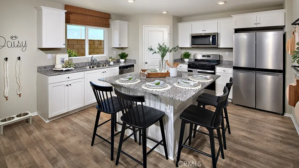 NEW CONSTRUCTION and QUICK MOVE-IN in Winchester - SOLAR INCLUDED!! - This 1,874-square foot home with a California Bungalow faade is located across from the community park and has 5 bedrooms and 3 bathrooms - This home includes [Washer | Dryer, Refrigerator, Blinds & Back Yard Landscaping]. The Island kitchen with island eating area has Valle Nevado granite counters, built-in stainless-steel appliances and a walk-in pantry. The interior comes complete with [Alto] Grey Colored shaker-style cabinetry throughout, lots of included recessed lighting, Rustic Taupe vinyl flooring on first level and plush carpet in all bedrooms, stairs, and closets! There is a DOWNSTAIRS BEDROOM AND FULL BATHROOM and upstairs the main bedroom with ensuite bathroom and walk-in closet, 3 additional bedrooms and full bathroom, and a laundry room. There is also a direct-access two car garage PRE-PLUMBED for an electric car! This truly modern home has all the Smart Home features you would expect and, is LANDSCAPED AND IRRIGATED in the front and back yards. The Pradera Place community is situated close to local parks and freeway access. This home is READY NOW for move-in and we can't wait to WELCOME you HOME! **HUGE SAVINGS!! Solar is "No additional cost to your buyer" - it is INCLUDED IN THE PRICE OF THE HOME** * No Rear Neighbor *