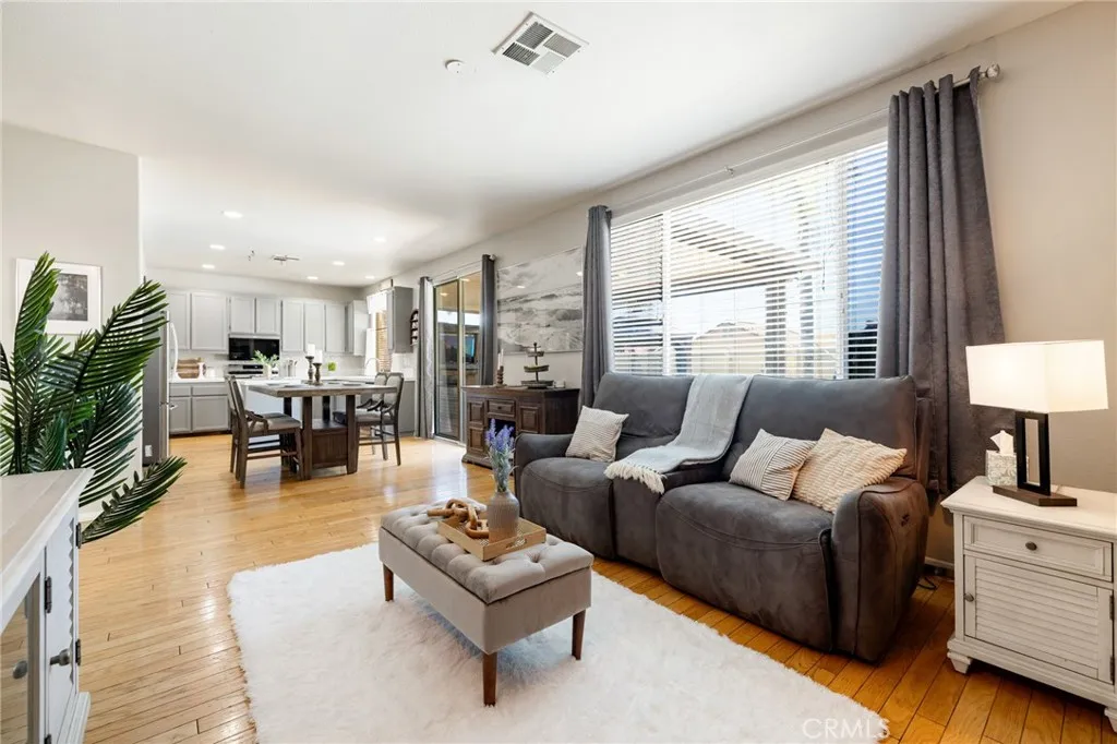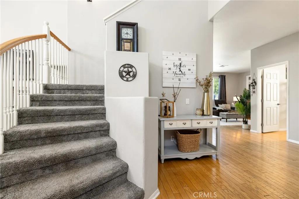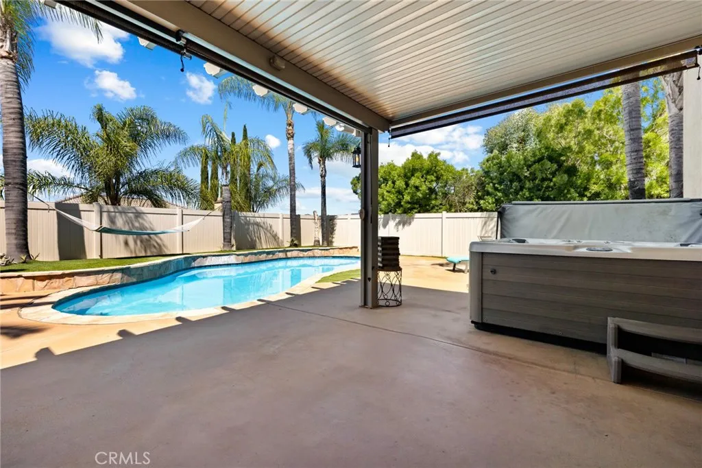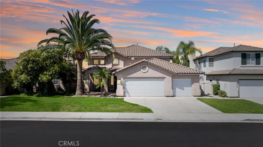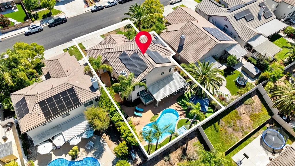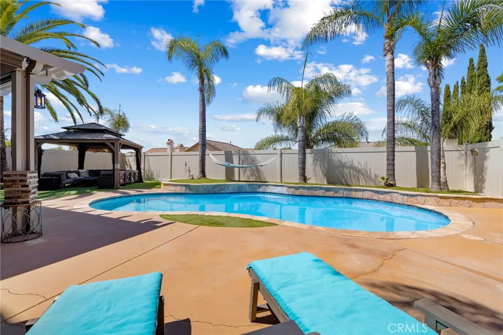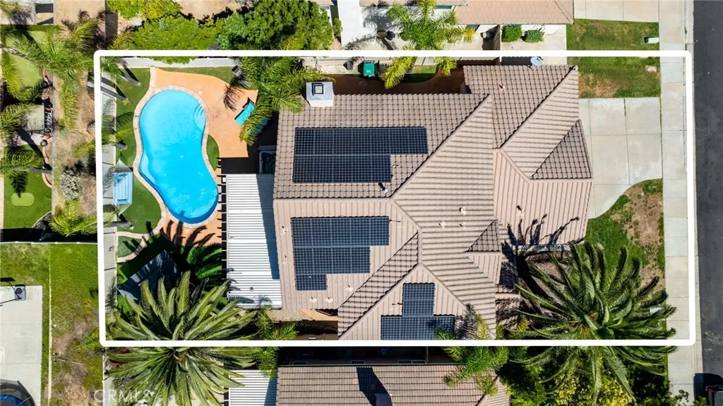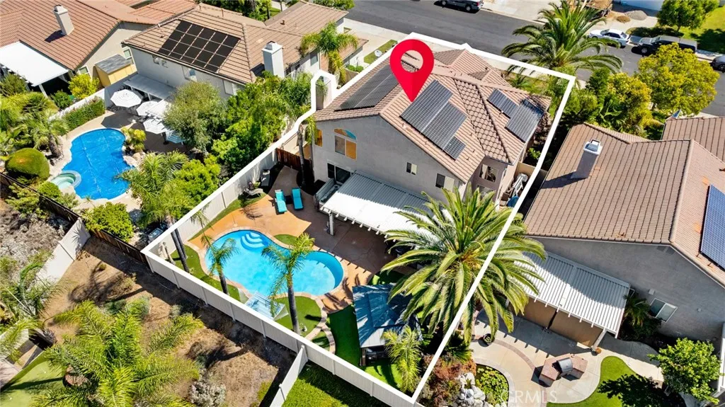 Welcome to your Murrieta oasis! This stunning pool home offers solar, no HOA, low taxes, two main floor rooms and a dream entertainers' yard! The 4 bedroom, 3 bath home offers an office and is nestled in the heart of Murrieta, within minutes to the 15 freeway, the main shopping centers, E Hale Curran Elementary school and downtown Murrieta; this home will not last! The property offers a wide driveway leading up to the 3-car garage that can easily fit a 25' boat if desired, which is surrounded by real lush grass, and an adorable porch facing gorgeous mountain views. Step inside and be greeted by soaring 30-foot ceilings that fill the formal living and dining rooms with natural light featuring real wood floors, custom paint and an inviting floor plan. The kitchen is warm and inviting, featuring gray cabinets, stainless steel appliances, tile counters and backsplash, and a cozy breakfast nook that flows seamlessly into the family room, complete with a fireplace, built-ins and offers tons of natural light. A main-floor office features custom built-ins and is next to the main-floor bedroom that is currently being used as a gym and offers a full bath with a shower and single vanity. The main-floor laundry room includes storage, a wash sink, laundry shoot, and direct access to the spacious 3-car garage which also boasts a 240 volt. Upstairs you will find a quiet cool whole house fan, new carpet less than a year old and the rest of the living space. The two spacious secondary bedrooms feature one room with real wood floors and a walk-in closet and the other with mirrored closet doo