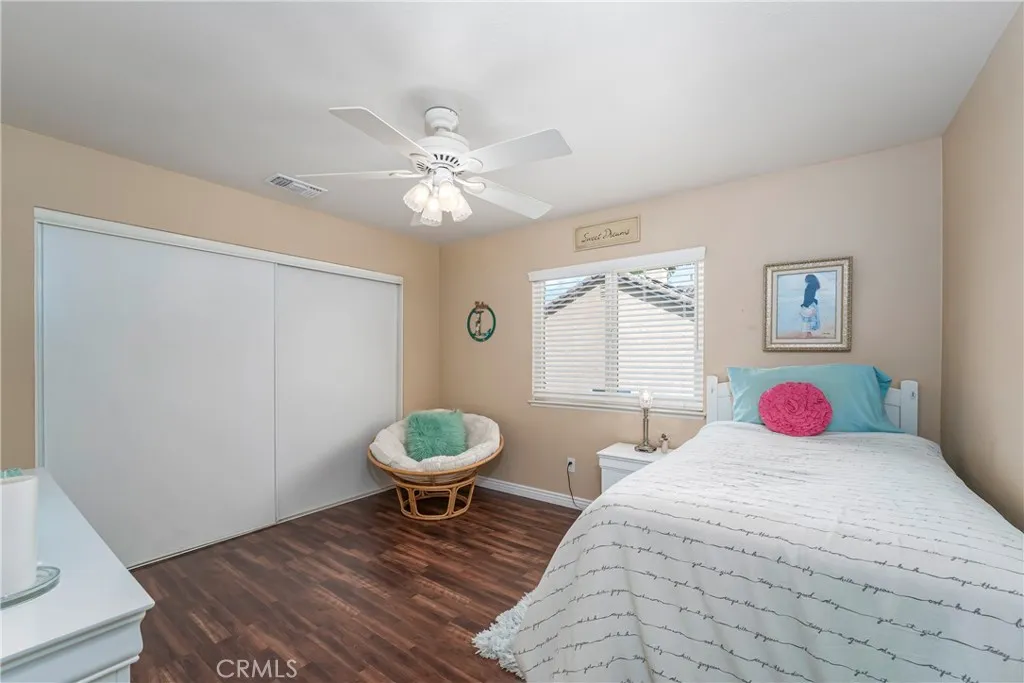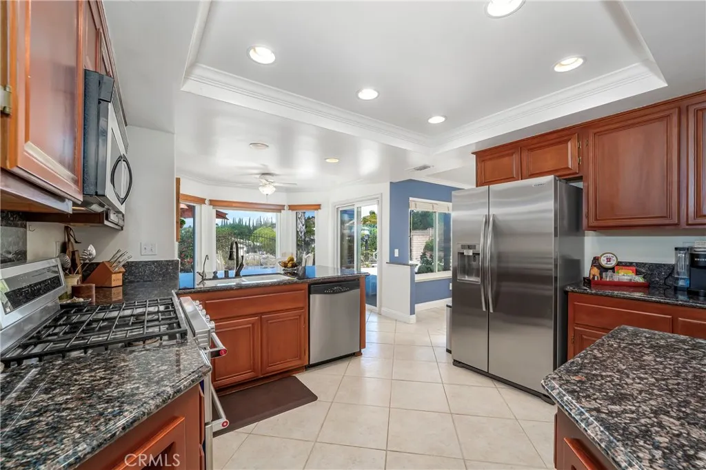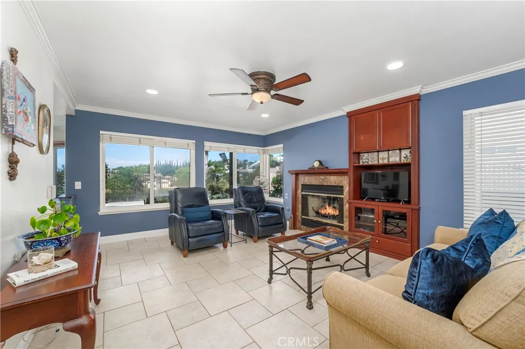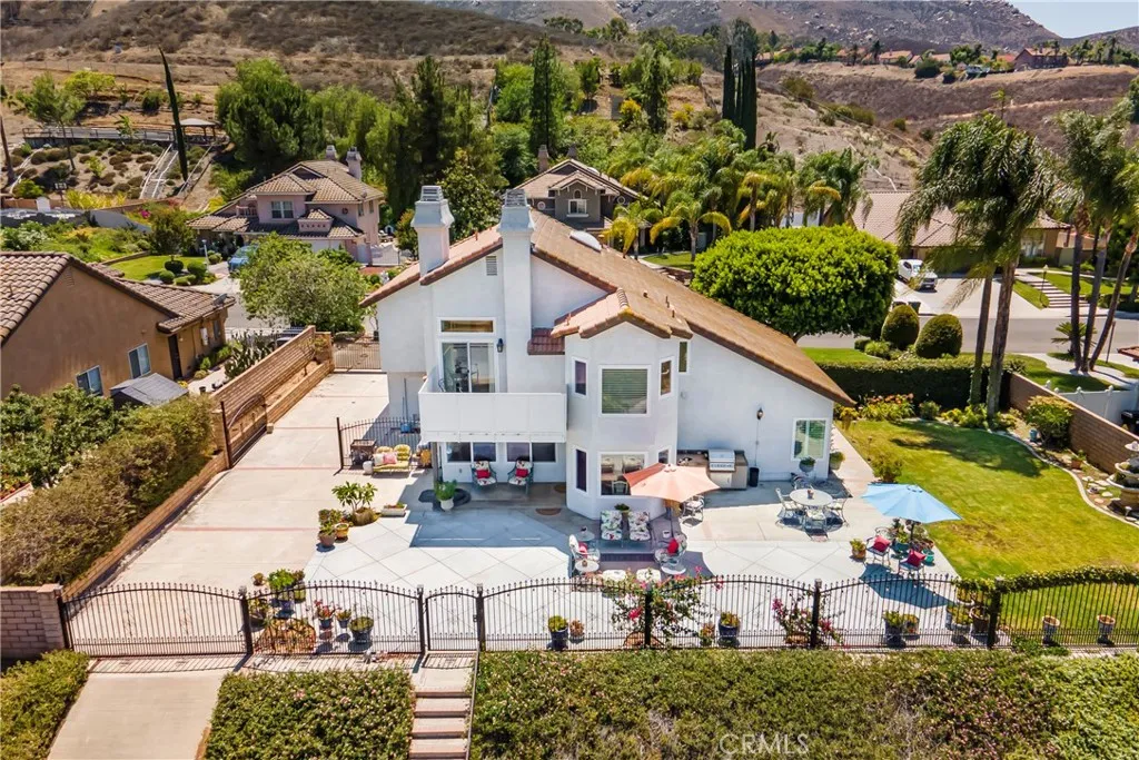 Land, Location and Lovely Views. Fulfill your dreams with over 1/2 acre fully fenced useable land with a natural running creek and vast mountain views all set on a quiet street in an exceptional neighborhood. Enormous gated RV access and parking for all the toys you can think of and WOW, a 3.5 car garage. Plenty of room for ADU, pool, gardening and outdoor fun. NO HOA fee and NO Mello Roos. The well designed 2,325 approximate square foot residence encompasses 4 generous bedrooms upstairs and 2.5 total baths. Covered front porch leads to entry door opening to the foyer with 2 story ceiling, sweeping curved staircase with wood banister and skylight at the upper hall. Spaces flow seamlessly for comfort and functionality including a formal dining and living room with large windows with plantation shutters offering more natural light overlooking a beautifully landscaped side yard, family room with fireplace open to the kitchen with granite counters, breakfast nook, breakfast counter and walk-in pantry. Primary bedroom upstairs with walk-in closet, fireplace, view balcony, and remodeled bath with double vanities with granite counters, Roman style bathtub, walk-in tile shower with bench and frameless glass enclosure. Three additional rooms upstairs share a beautifully remodeled bath with double sink vanity. The expansive terraced backyard offers outdoor space, generously sized entertaining area with enormous concrete wrap around patio, built-in barbeque area with fridge perfect for gatherings with family and friends, large side yard with grass area and gentle walking paths leading