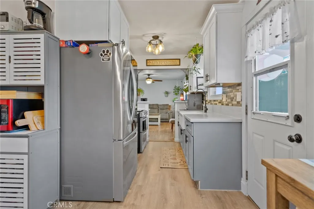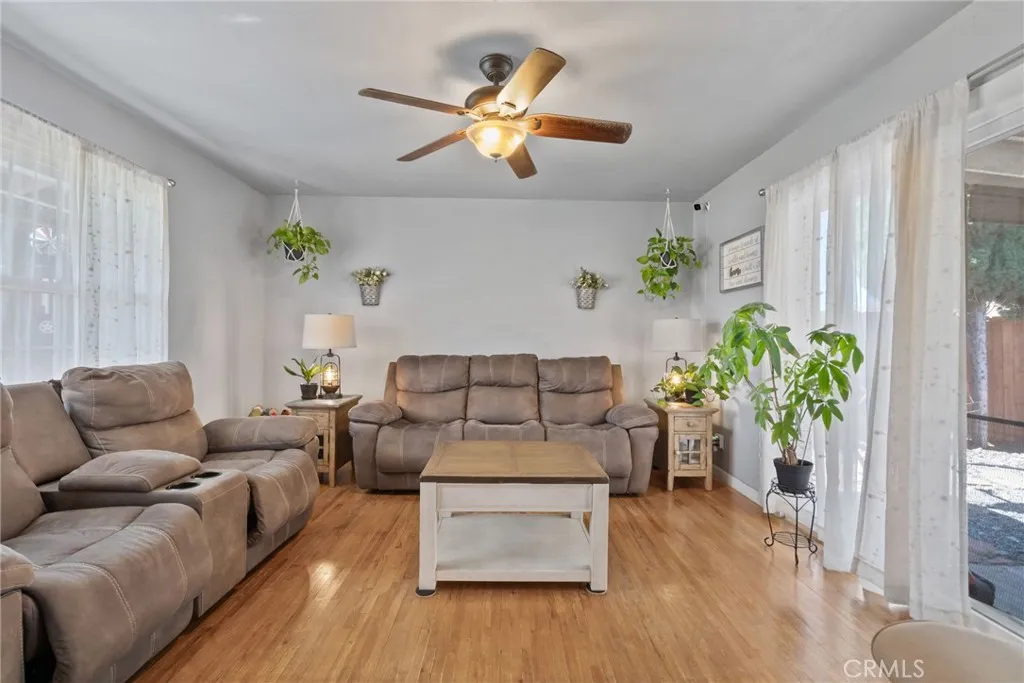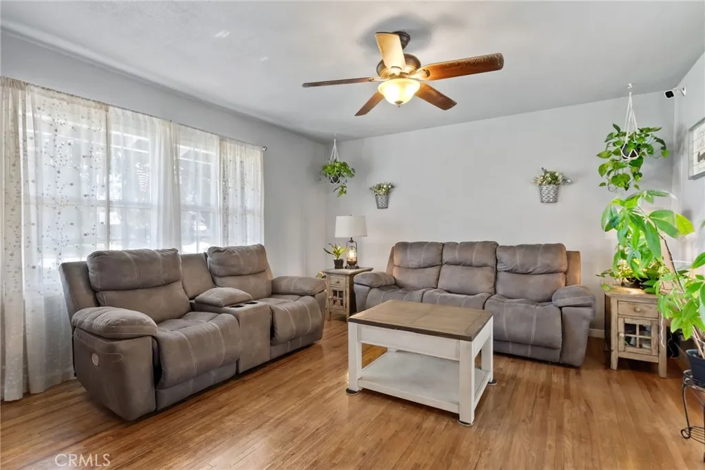 Welcome to your dream home where charm, comfort, and modern style meet! This beautifully maintained residence boasts undeniable curb appeal with a fully landscaped front yard that invites you in with lush greenery and thoughtful design with SOLAR. Step inside to a spacious living room thats perfect for relaxing evenings or entertaining guests, full of natural light and warmth. The home offers three generously sized bedrooms, each providing plenty of space for restful nights and personal retreats. Youll find two full bathrooms, tastefully appointed for both functionality and style ideal for busy mornings or unwinding at the end of the day. Gleaming wood floors run throughout the entire home, adding timeless elegance and easy maintenance to every room. The updated kitchen is a true standout, featuring modern finishes and ample counter space to inspire your inner chef whether youre preparing a quick breakfast or hosting a dinner party. Step outside to your fully landscaped backyard oasis, complete with a cozy firepit perfect for gathering with family and friends under the stars. Additional highlights include a two-car garage offering convenience and extra storage, as well as ceiling fans throughout the home to keep you comfortable year-round. Conveniently located near freeways and shopping. This move-in ready gem truly has it all style, functionality, and spaces designed for making memories. Dont miss your chance to call it home!