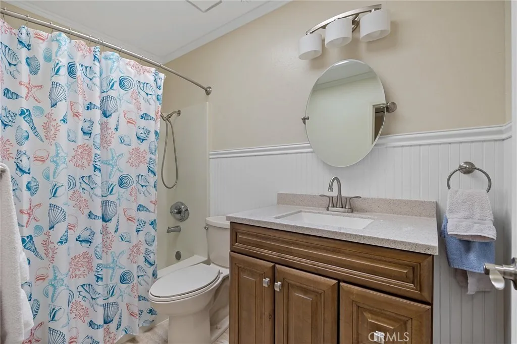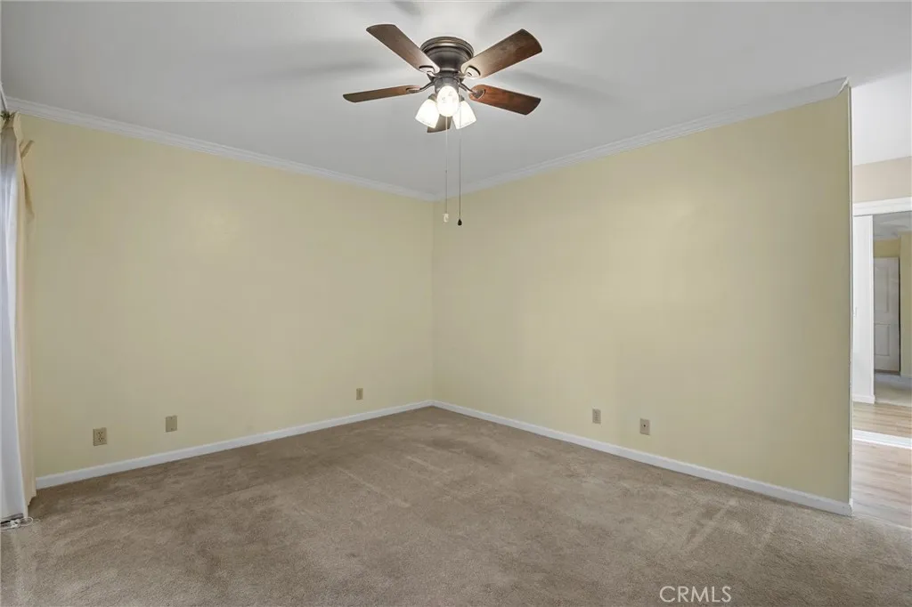 Discover this charming single-level home nestled in the peaceful Woodcrest community. This delightful 2-bedroom, 2-bathroom residence also offers a versatile den that could easily become a third bedroom by adding a closet. The spacious living room, featuring laminate flooring and a cozy fireplace, opens to your own private patio through a glass sliderperfect for quiet mornings or evening relaxation. The kitchen is a true highlight with its newer gas range, stainless steel fridge, dishwasher, and microwave, complemented by tiled floors and granite countertops. Enjoy casual meals in the kitchen eating nook, with a glass slider leading to the front patio. Throughout the home, solar tubes ensure bright, natural light without needing to turn on the lights. The primary suite is a serene retreat, boasting a spacious bedroom with crown molding, built-in drawers, and cabinetry for ample storage. You'll find two closets with mirrored wardrobe doors. The ensuite bath has laminate flooring, a dual sink vanity, a beautifully tiled shower with an upgraded shower head and glass doors, and a private water closet. The additional bedroom is also enhanced with mirrored wardrobe doors. A full bath off the hallway has been tastefully updated with a newer vanity, mirror, and light fixture, accented by charming wainscoting and crown molding. Indoor washer and dryer are included, as is a whole house fan for comfortable living. Beyond the home, enjoy the community pool on hot summer days and let the HOA handle the detailsincluding exterior maintenance - Stucco & Lights, structure insurance, water,